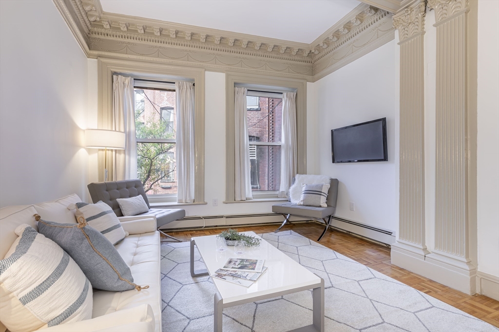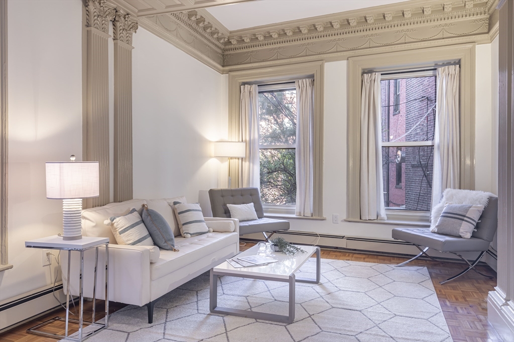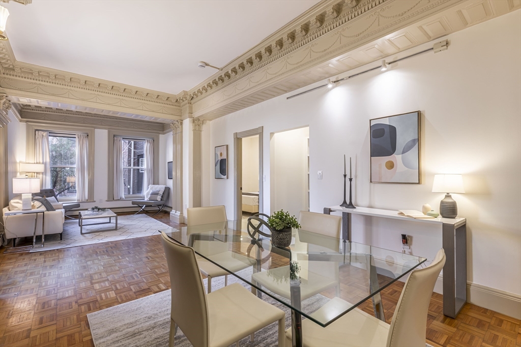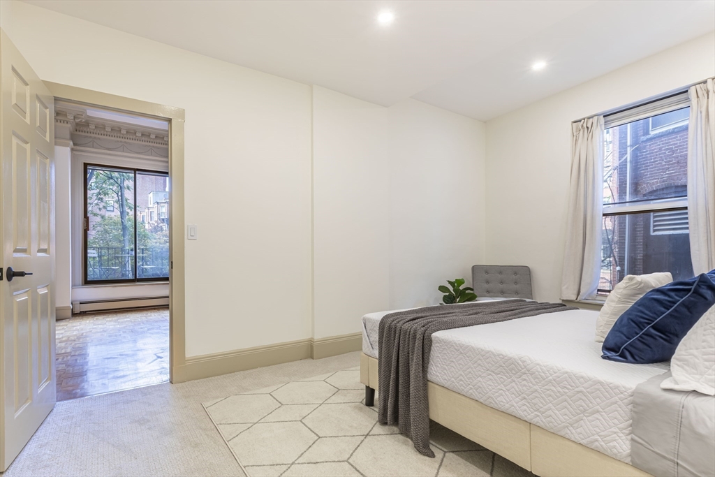 Welcome to this large and inviting 2 bed, 1 bath home nestled in one of Back Bay’s most grand buildings on Comm. Ave. This beautifully maintained residence combines timeless character with modern comfort, featuring high ceilings, ornate architectural details, and classic parquet flooring throughout the living / dining room. The spacious living room opens to a private balcony, perfect for enjoying a morning coffee or evening breeze. Both bedrooms are fitted with brand-new carpet and the entire home has been freshly painted. The primary bedroom is large enough to accommodate a king sized bed. Both bedrooms offer large closets. The kitchen offers ample storage and is outfitted with stainless appliances. Located in a professionally managed building with Butterfly intercom access, and common laundry this property offers ease of living in a downtown neighborhood, just moments from Boston’s finest dining, shopping, and green spaces along the Comm. Ave Mall. Ask about nearby rental parking.