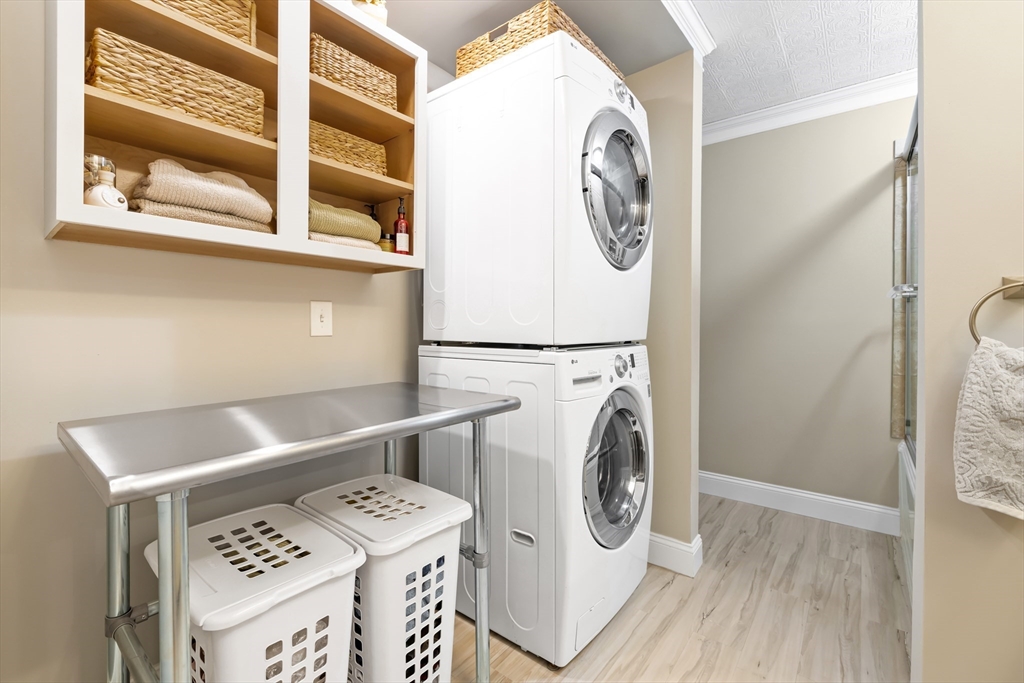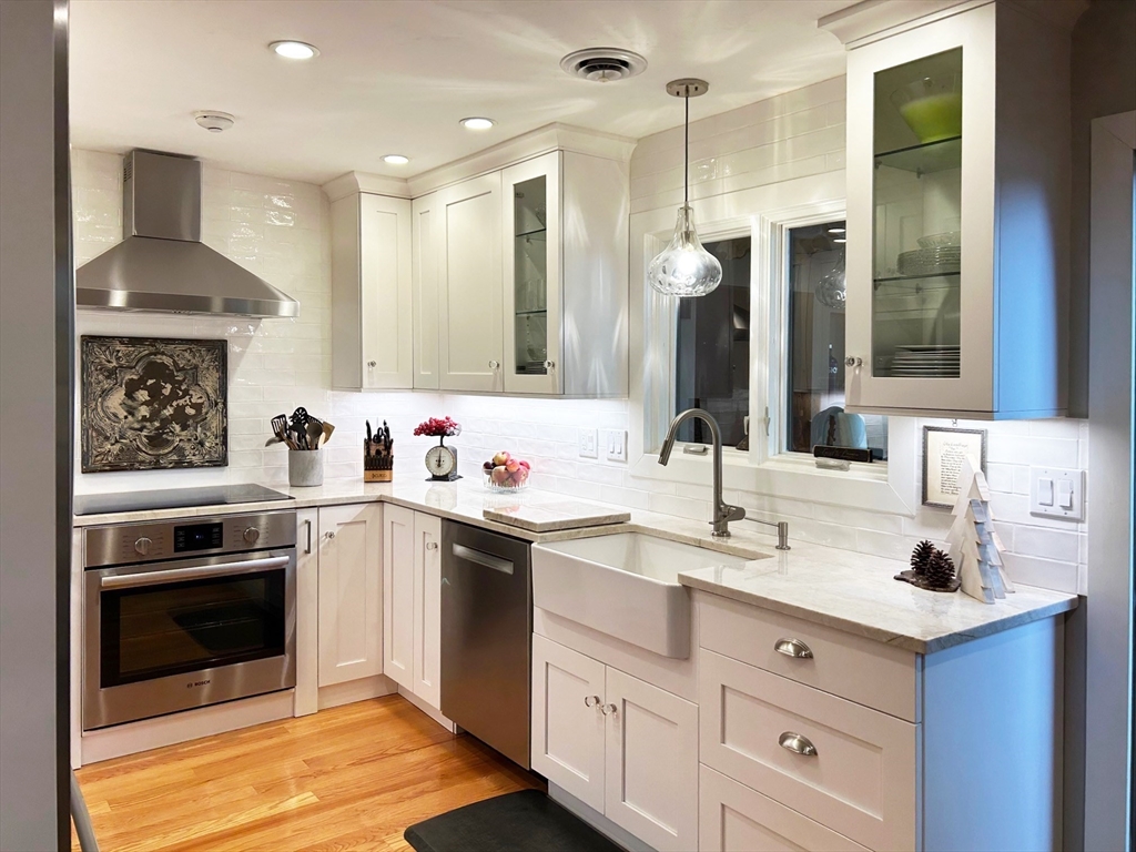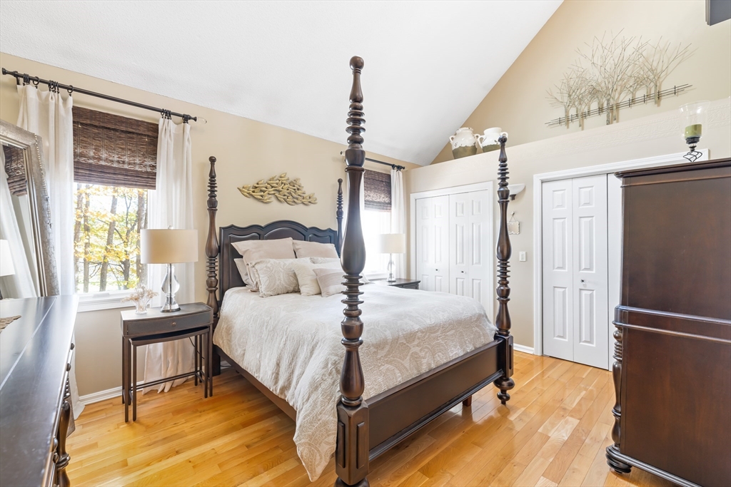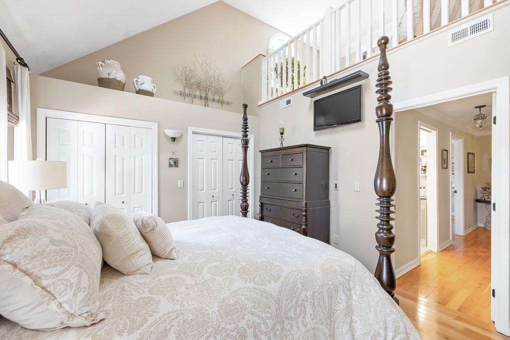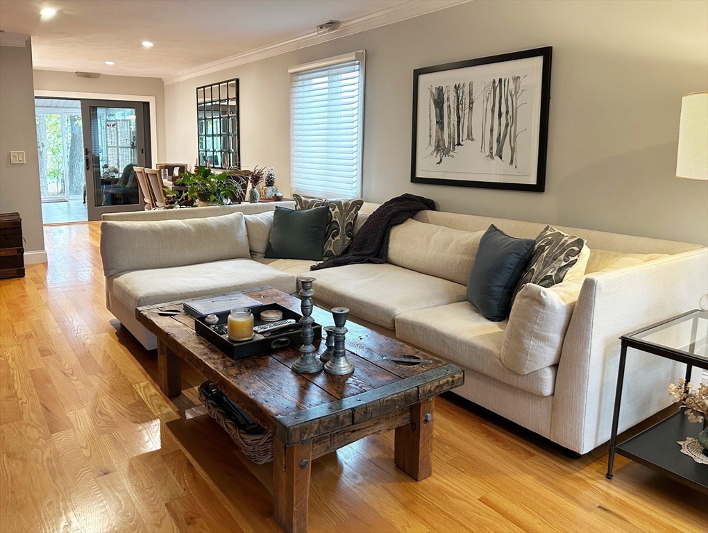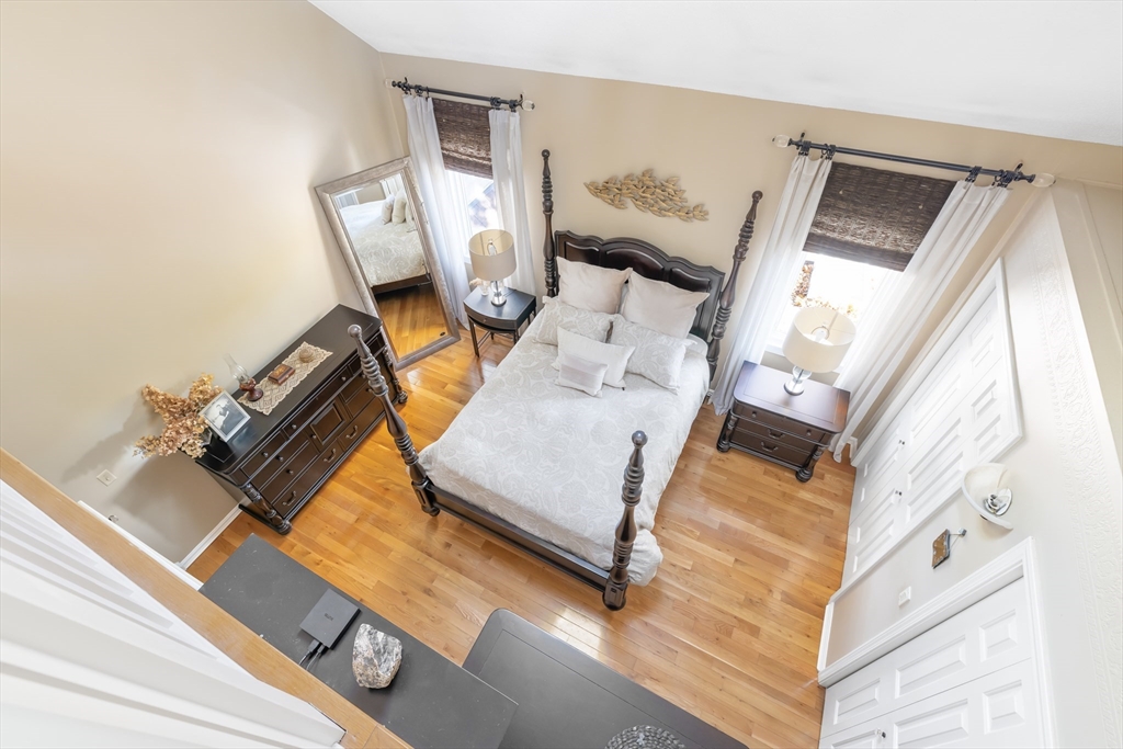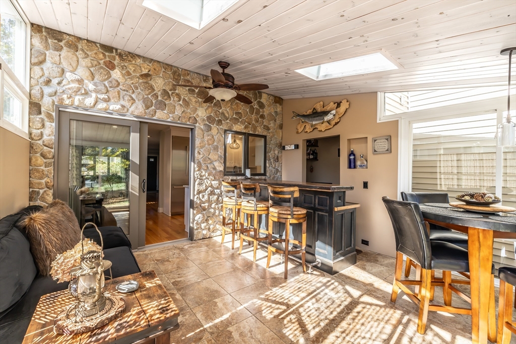 Welcome to your dream home at Fairview Woods on Pine Ridge Golf Course! This inviting end unit is brimming with quality upgrades throughout. Step inside to a bright and airy layout featuring a custom kitchen equipped with exquisite quartzite counters and top-of-the-line Bosch stainless steel appliances. Unwind in the expansive main family room with pellet stove that efficiently warms the entire unit. The highlight of this home is the 3-season sunroom with radiant heated floor, wet bar, and a stunning natural stone accent wall, overlooking the lush grounds on the 4th hole. Hardwood floors flow seamlessly throughout the entire home. The 2nd floor has two generous size bedrooms, along with a full bath and laundry. The 3rd floor loft area doubles as an office with custom-built bookcases, cabinetry, desk, and window seat, offering a quiet retreat. Less than 10 minutes to shopping, restaurants, MA Pike, Rt 290, & 395. Experience refined living with the perfect blend of style and convenience!