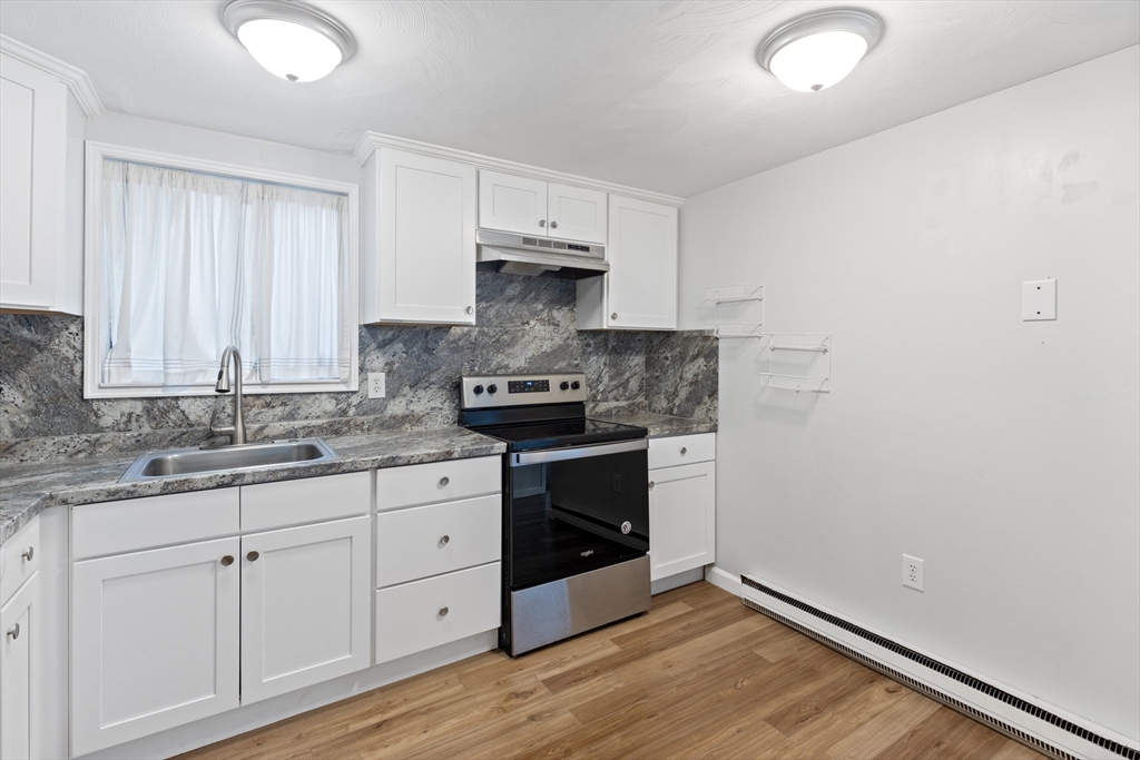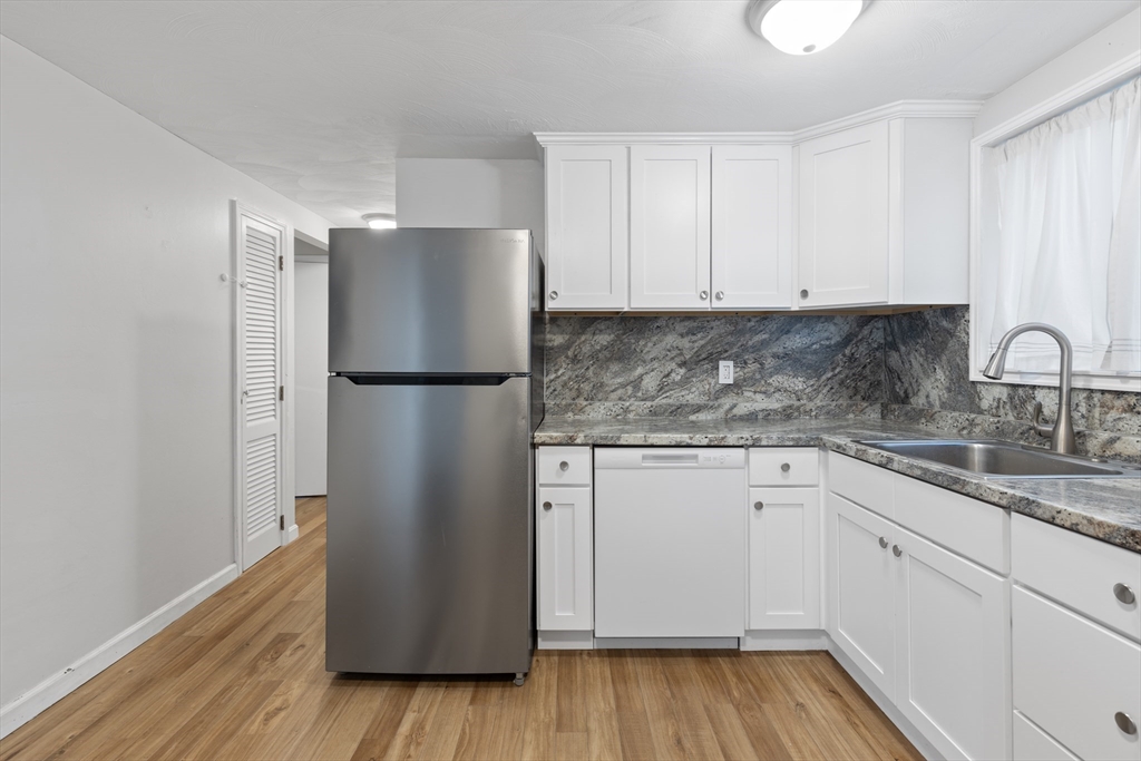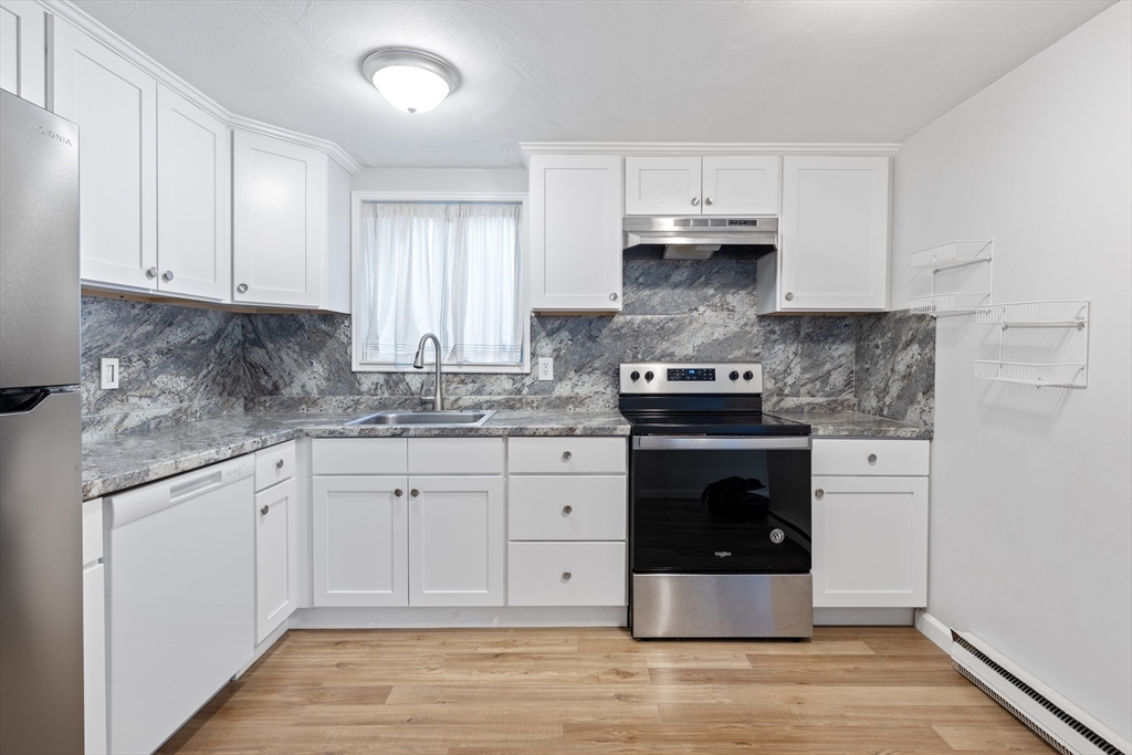 Location, location, location. This ground floor unit boasts some seclusion while simultaneously offering quick access to the highway, shopping, and restaurants. Take advantage of recent renovations of flooring, paint, and fixtures in this newly bright space that is turn-key. This residence presents a canvas ready for your personal touch. This 1968-built condominium represents a solid investment in a desirable location. Bathroom renovated late 2024 with walls, flooring, ceiling, vanity, new kitchen floor in 2021, new kitchen in 2022, new carpet in bedrooms in 2024 as well as freshly-painted. All that is required is for you to move in and make it your own home. Come by, fall in love, and make an offer to reach your goal to own property in a desirable Massachusetts town. Cash buyers and buyers who have performed due diligence with lending are welcomed in this move-in ready property.