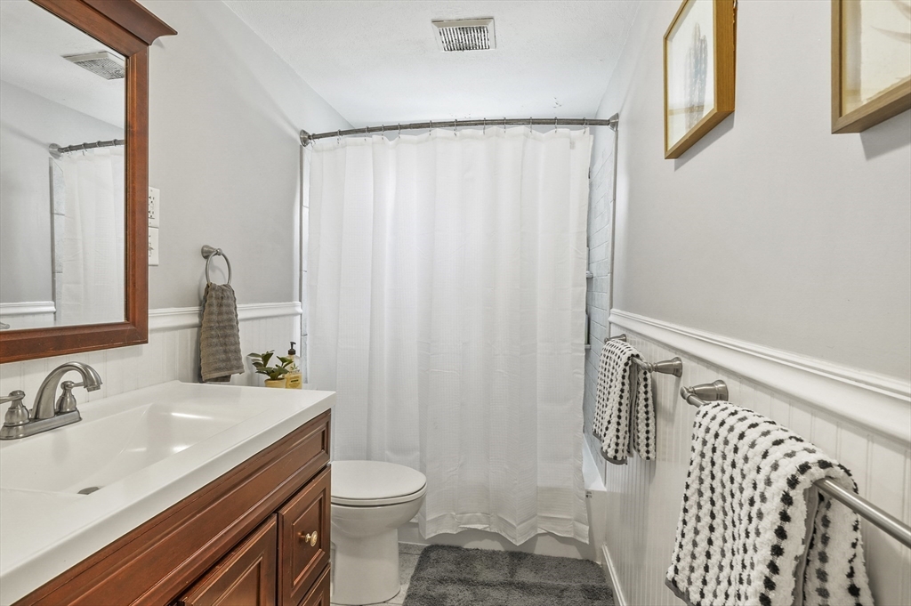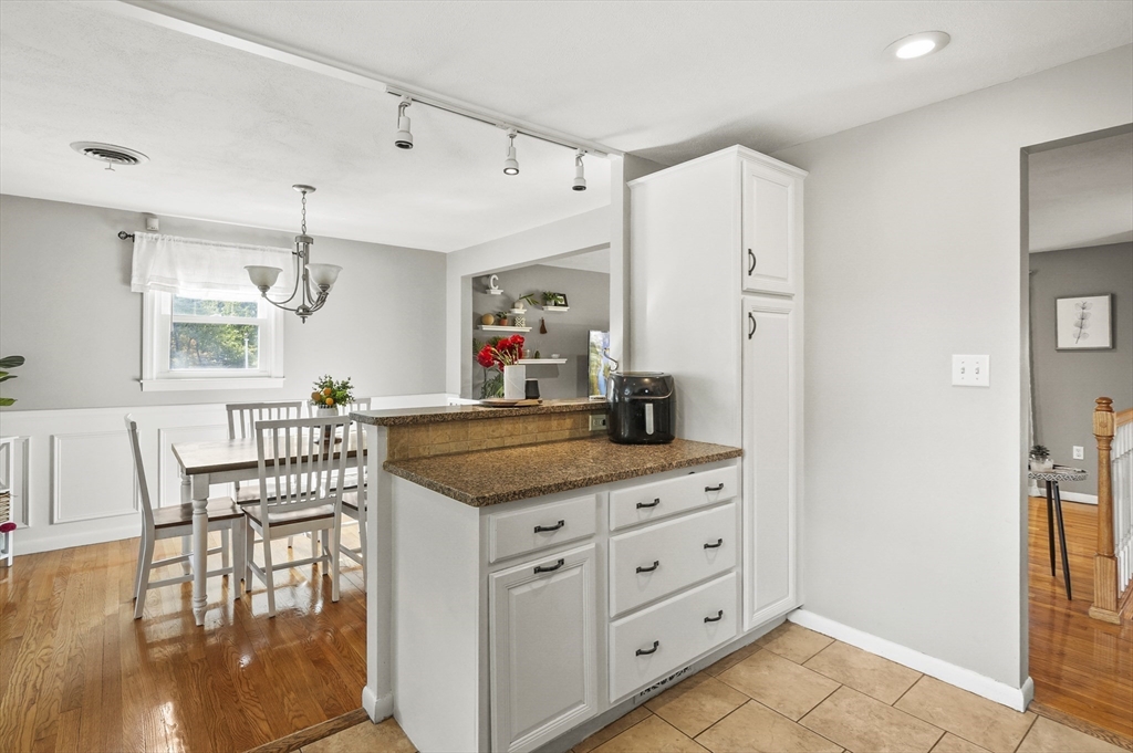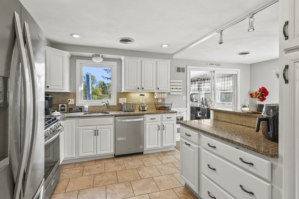 Fantastic opportunity in one of Northborough’s most desirable neighborhoods! Tucked away on a dead-end road, this 3-bedroom, 2.5-bathroom Raised Ranch is ready for its next owner. The main level offers great style and function with hardwood floors flowing from the sun-drenched living room into the dining area. The kitchen features granite countertops, gas cooking, and a convenient breakfast bar. Off the dining area, you'll love the sunroom and back deck for indoor/outdoor living. Down the hallway are three bedrooms and a full bathroom, with the primary bedroom offering the convenience of a private half bath. Need more space? The finished lower level is a true asset, boasting an expansive family room with a cozy fireplace, a versatile bonus room, and a second full bathroom with laundry. Additional features include central AC and a one-car garage. The exterior provides a fully fenced-in backyard. Close to all major routes, Ellsworth-McAfee Rec. Park & Fields and elementary schools!