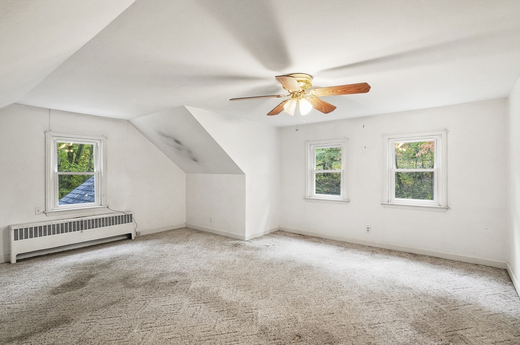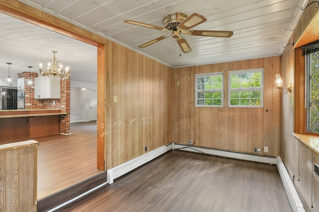 Welcome to this unique Cape-style home, privately tucked away at the end of a dead-end street in Worcester! Inside you will find a large fireplaced living room with a picture window that fills the space with natural light, and an open kitchen offering granite counters, plenty of storage, a breakfast nook, and a dining area. A charming sunken dining room with a bay window provides the perfect spot for gatherings. Upstairs you’ll find three good-sized bedrooms, a full bath, and a bonus office space. The finished lower level adds even more flexibility with a bonus room, half bath, and laundry area. Enjoy the convenience of an attached garage, ample off-street parking, and a large yard surrounded by trees—your own private retreat just minutes from Vernon Hill School and Glodis Field. Make this inviting home yours and celebrate the season in comfort and style!