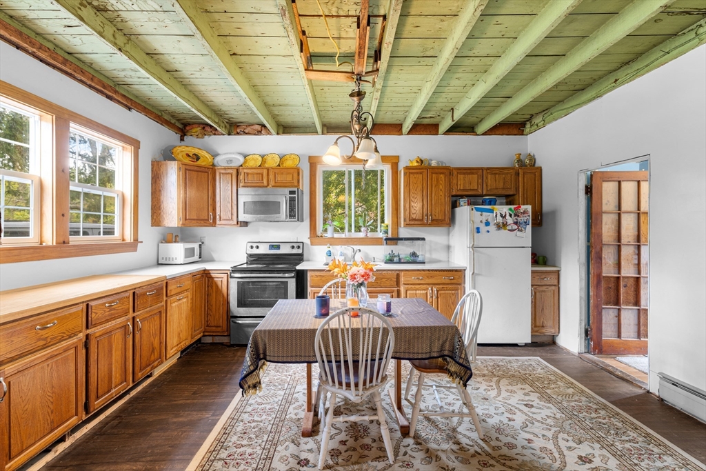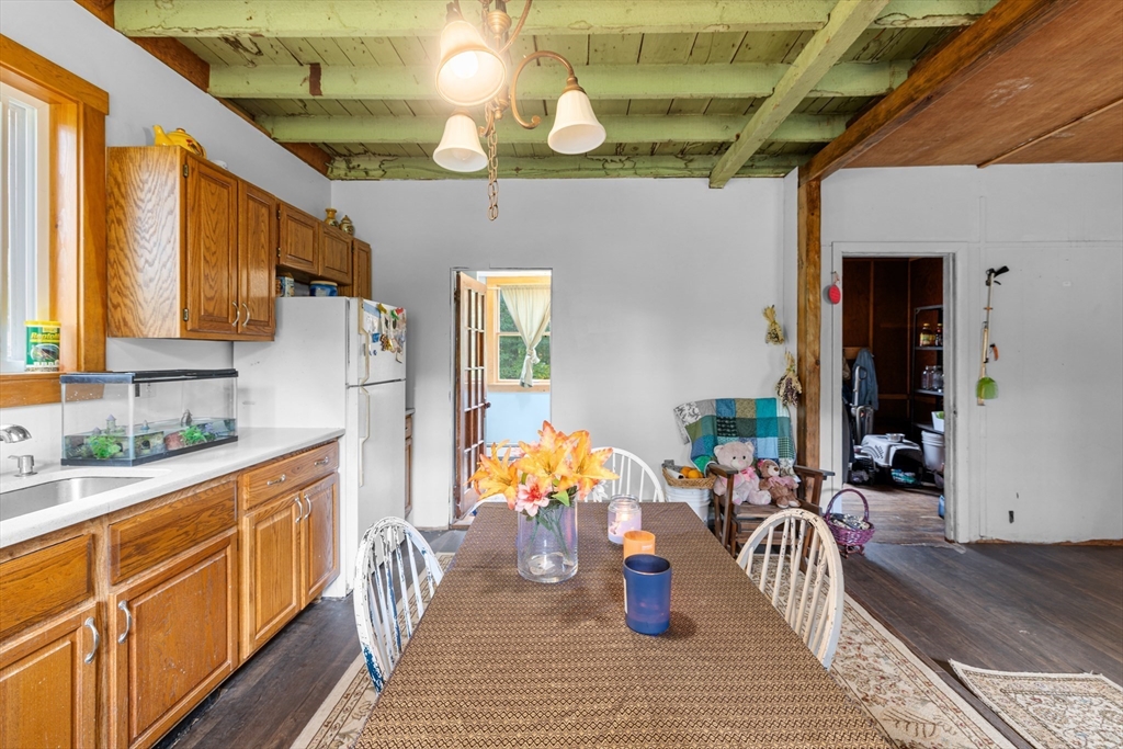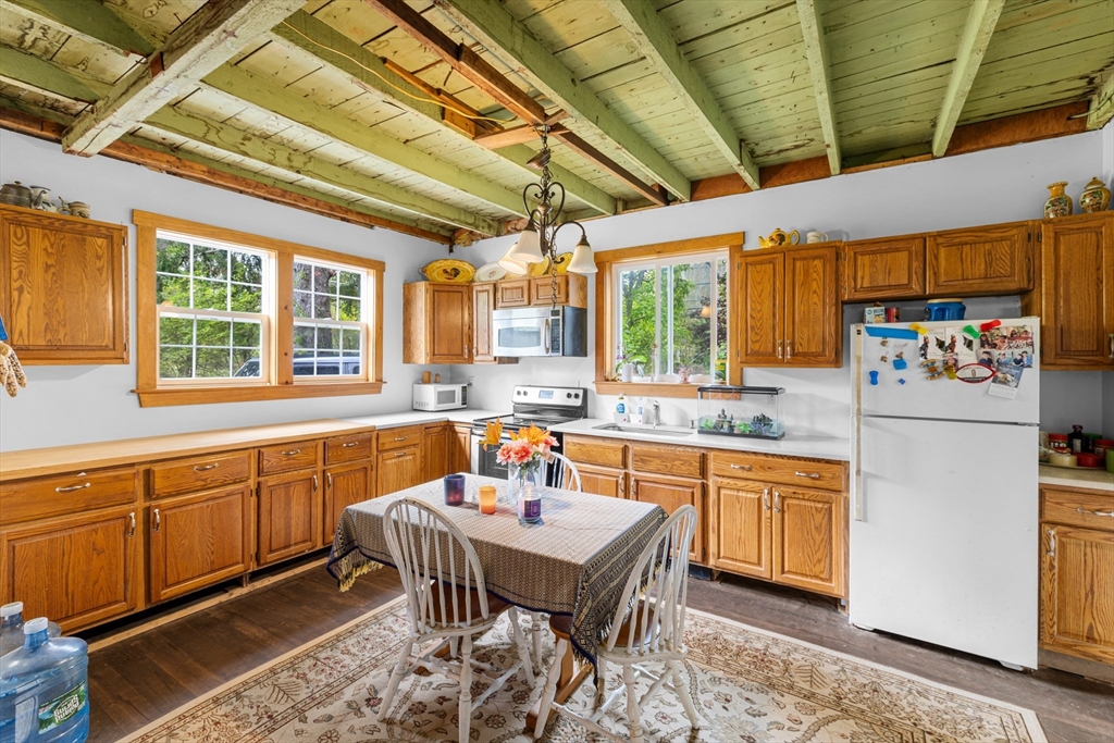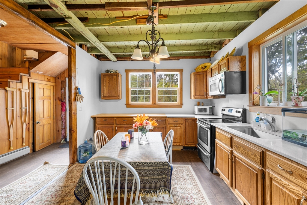 Nestled at 595C Quanapoag Rd, Dartmouth, MA, this single-family residence in presents an inviting home, ready for its next chapter. The kitchen offers a unique culinary space, highlighted by a light mint green wood ceiling and wood flooring , ready for the creation of memorable meals. In the living room, the wood beamed ceiling and wood wall create a warm, inviting atmosphere, perfect for relaxation and gathering. One of the bedrooms also features a wood wall, providing a cozy and distinctive personal space. This property includes 3 bedrooms and 1 full bathroom within its 1200 square feet of living area. The residence, built in 1880, sits on a generous 80,150 square foot lot. The outdoor spaces include a deck and a lovely backyard, providing opportunities to enjoy the natural surroundings. This charming residence offers a unique blend of character and comfort, ready to be enjoyed !