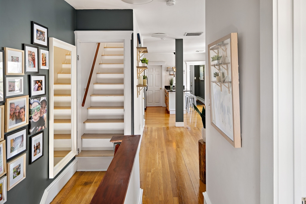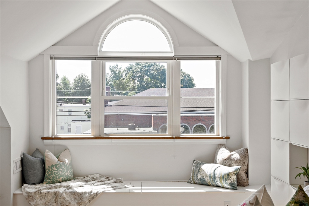 Step into a sun-filled, modern townhouse where comfort meets style. Skylights and bay windows bathe the space in natural light, highlighting gleaming hardwood floors and a functional kitchen with a large island and Bosch appliances. A charming, cottage-like passageway leads to the sun-drenched primary suite, where dual skylights and generous space create a romantic, spa-like sanctuary. Rare spacious 2-beds and 2-baths plus a bonus room. Enjoy your private deck and fenced yard—perfect for morning coffee or quiet evenings. Recent updates include fresh paint, new upstairs flooring, and a refreshed shower. With two deeded parking spaces and basement storage, everything you need is right at home. Just 4 blocks from Moody Street’s vibrant shops, restaurants, and cultural events, this home offers easy access to the commuter rail and I-95, making it ideal for both work and play. Contemporary updates, functional living spaces, and an unbeatable location—ready for you to move in and enjoy!.