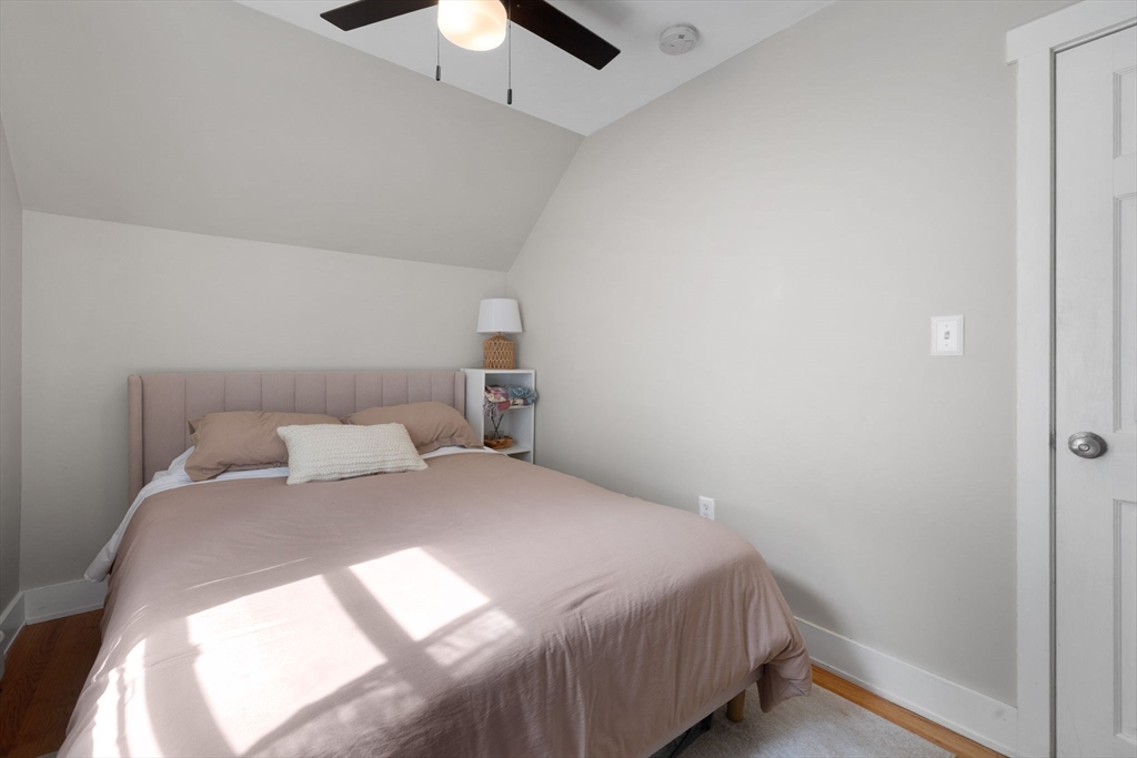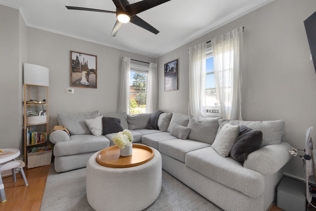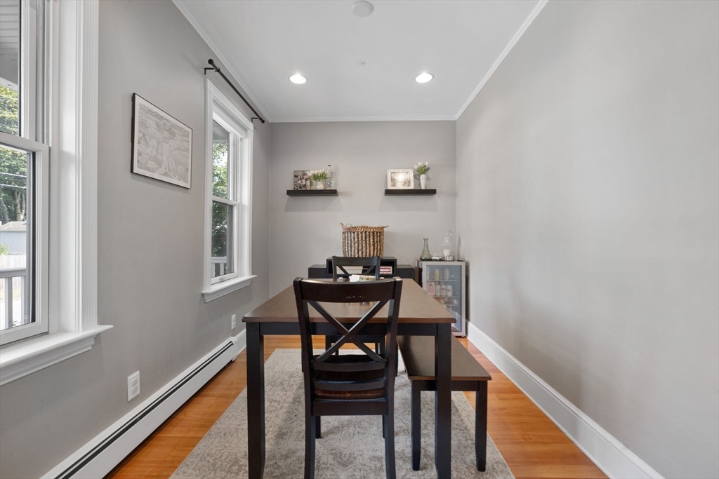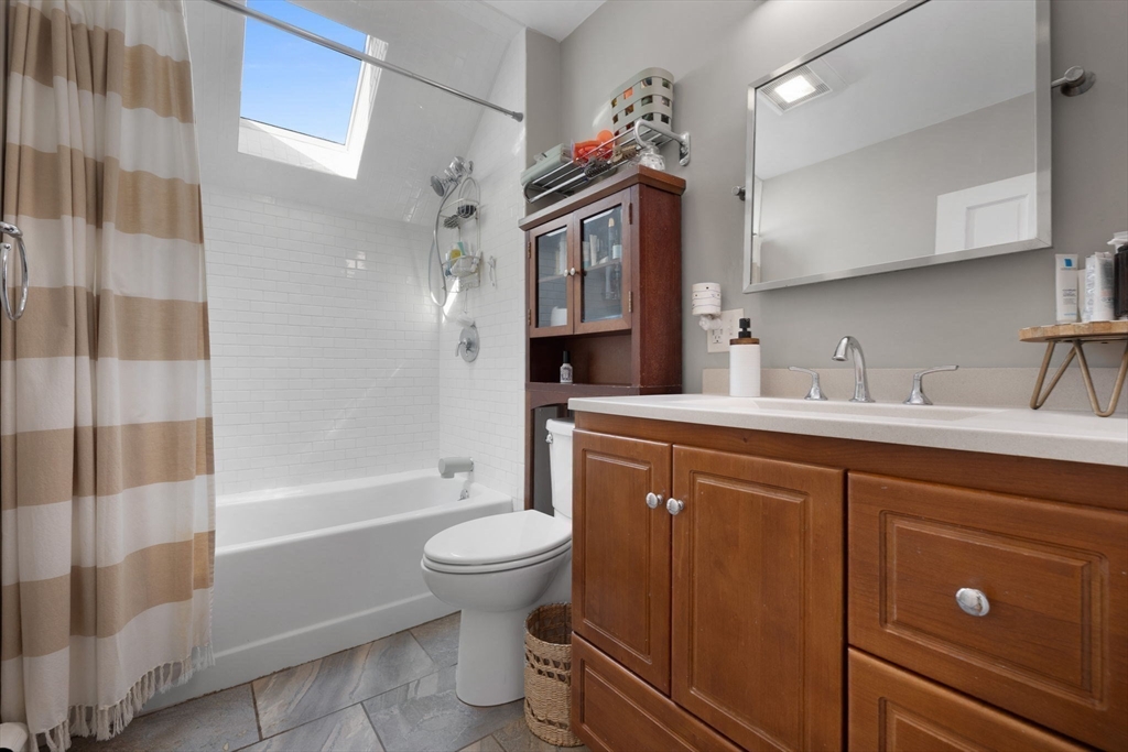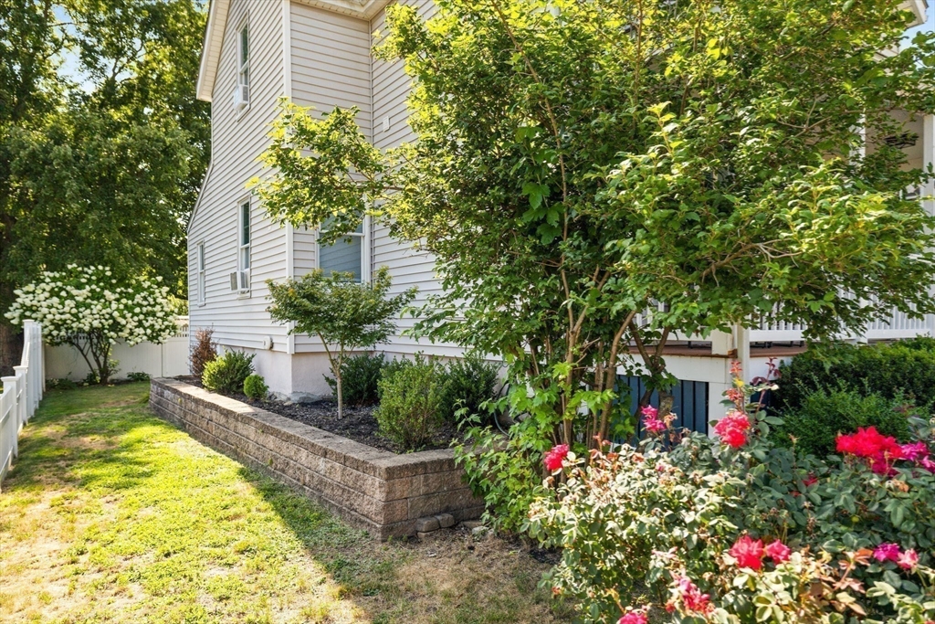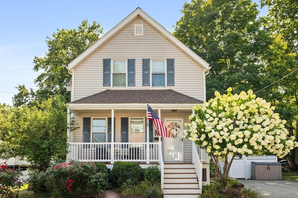 Presenting a pristine "move-in ready" Colonial, ready to be your next residence! Revel in the pride of ownership and elegance throughout: soaring ceilings, hardwood floors, two beautifully appointed full baths, a stunning & bright kitchen, large windows & skylight. The elegant dining room features custom built-ins and French doors. A sunlit and cozy living room seamlessly connects to the kitchen, delivering the open floor plan you admire. A private den/office completes the first floor, ideal for "work from home" needs. Each of the 3 bedrooms boasts generous closet space, with the master showcasing a custom closet system. Recently updated gas heating & hot water systems offer an efficient upgrade as well as new roof install 2025. A quaint farmer’s porch, shaded patio, and colorful blooming gardens within a newly fenced-in yard finish this remarkable property. Proximity to shops & train enhances the charm and convenience you seek. For those desiring a turn-key home, this is a "must-see."