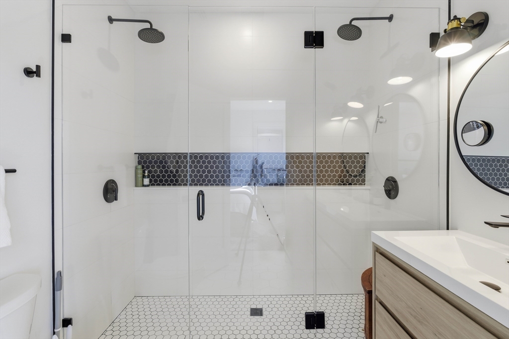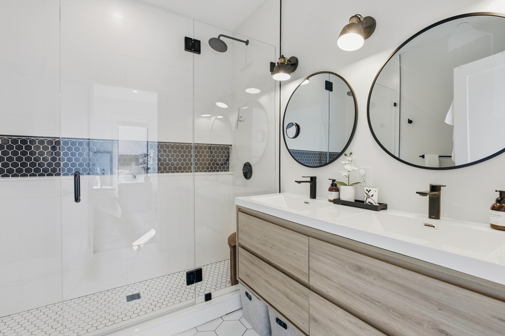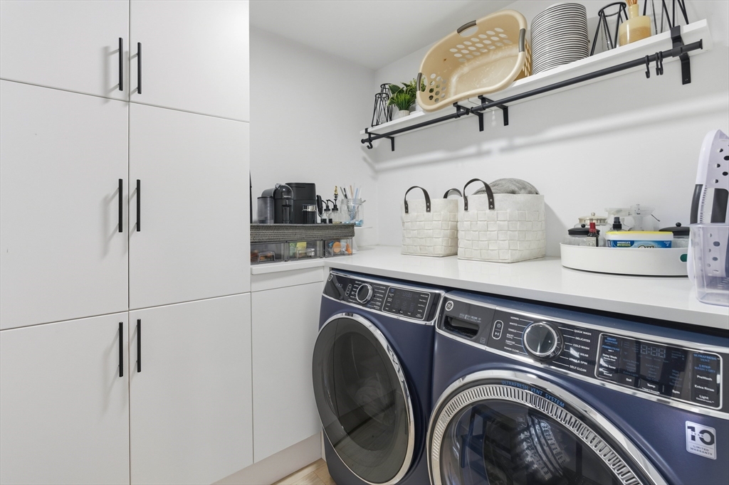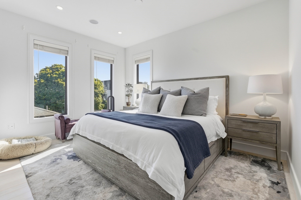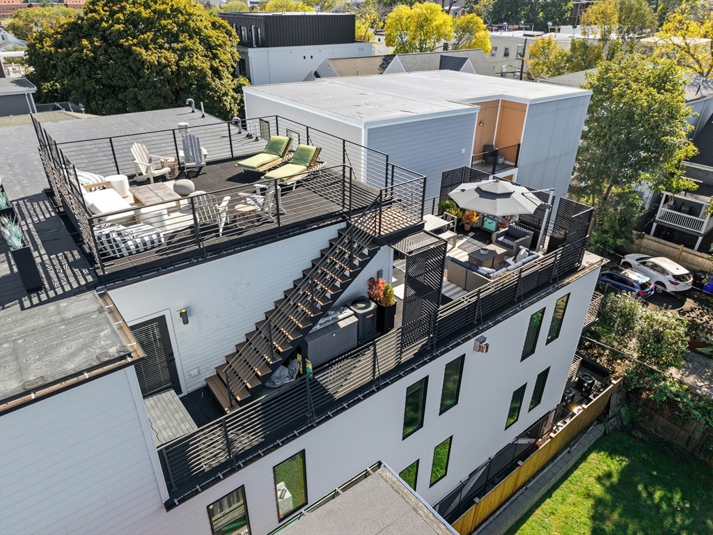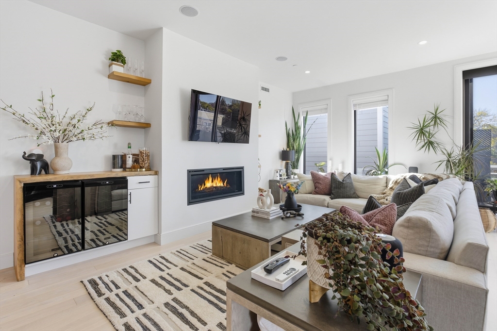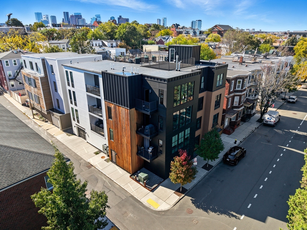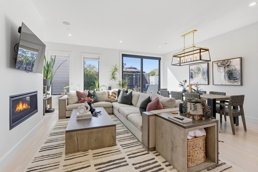 Modern Jeffries Point Penthouse with Private Roof Deck. Experience modern East Boston living in this newer-construction penthouse built in 2021. This 3-bed, 2-bath home offers 1,428 sq ft of living space plus 1,000+ sq ft of private outdoor space, including a roof deck with panoramic city and harbor views. The open layout features a chef’s kitchen with quartz waterfall island, high-end appliances, and a bright living area that opens to a private terrace, perfect for entertaining. The primary suite offers dual closets and a spa-like bath with glass shower. Two additional bedrooms, one with a private deck, provide space for guests or an office. Enjoy hardwood floors, recessed lighting, built-in sound, in-unit laundry, and garage parking. Minutes from Harborwalk, East Boston Greenway, parks, and waterfront trails, plus neighborhood favorites like Starbucks, The Quiet Few, Mida, ReelHouse, and Santarpio’s. Quick access to Maverick Station, East Boston Ferry, and major highways.