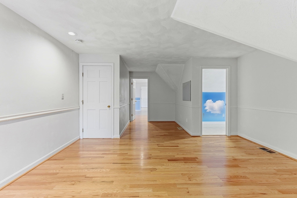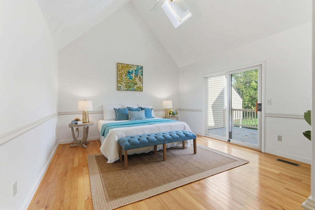 Step into light and luxury with this stunning end-unit townhouse in a highly sought-after community. Designed with open, airy spaces and soaring cathedral ceilings, this home invites sunlight into every corner. The first-floor primary suite adds ease and privacy, complemented by hardwood floors throughout the main level, another bedroom, full bath and laundry room complete the first floor. A white-cabinet kitchen opens to a bright dining area and deck, perfect for morning coffee or evening gatherings. The attached garage and unfinished walk-out basement provide both convenience and potential for future expansion. Perfectly positioned for those seeking a low-maintenance lifestyle with room to grow. This beautifully maintained end-unit townhouse offers the perfect balance of sophistication and comfort in a popular, convenient location - centrally located and very close to town.