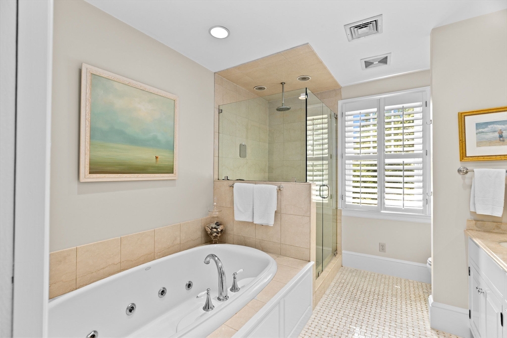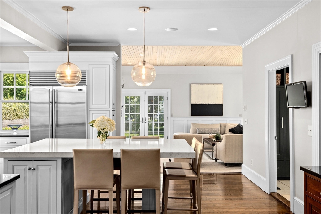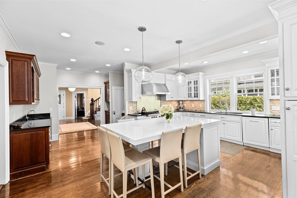 Gorgeous Furnished Beach Street Rental perfect for anyone house hunting, renovating, or seeking a short-term coastal escape. Beautifully furnished 6-bedroom home on picturesque Beach Street with water views—just steps to the beach, Cohasset Common, and downtown. Features include a stunning chef’s kitchen with oversized island and wet bar, open floor plan with sun-filled family room, fireplace, and access to a serene backyard. Primary suite offers a king bed, ensuite bath with jacuzzi, and sitting room. Additional bedrooms are stylish and comfortable, with a third-floor guest/teen suite and finished lower level with gym and ping-pong table. Cohasset at your doorstep!