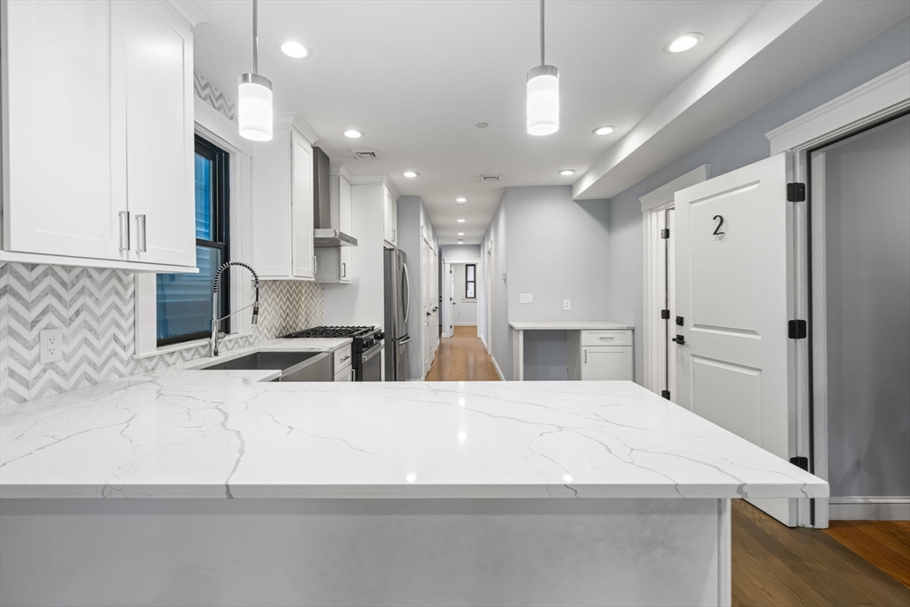ONE MONTH FREE ON LEASE ENDING 5/31/2027 OR 8/31/2027 - Stunning East Boston apartment in Eagle Hill, meticulously renovated with new cabinetry, stainless steel appliances and a chef's style gas stove . Enjoy an open- concept layout featuring two oversized bedrooms with en-suite baths and ample closet space. With an in-unit unit washer/dryer,this apartment offers added convenience for busy commuters to Logan airport and I-90, Route 1 and the North Shore and downtown Boston. Perfect for those wishing to entertain due to the amazing space and abundant natural light from large windows. Private outdoor space. Pets negotiable, street parking. Easy to show- don't miss out!
