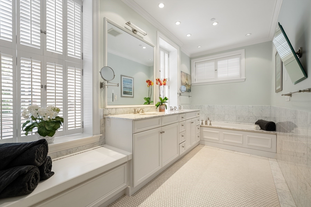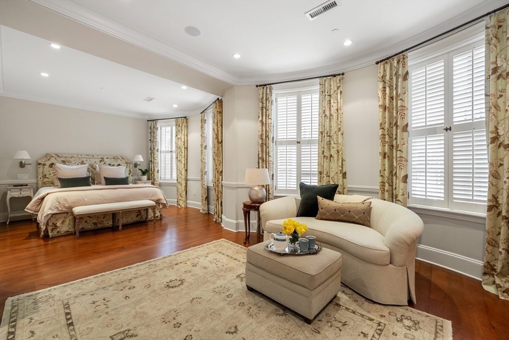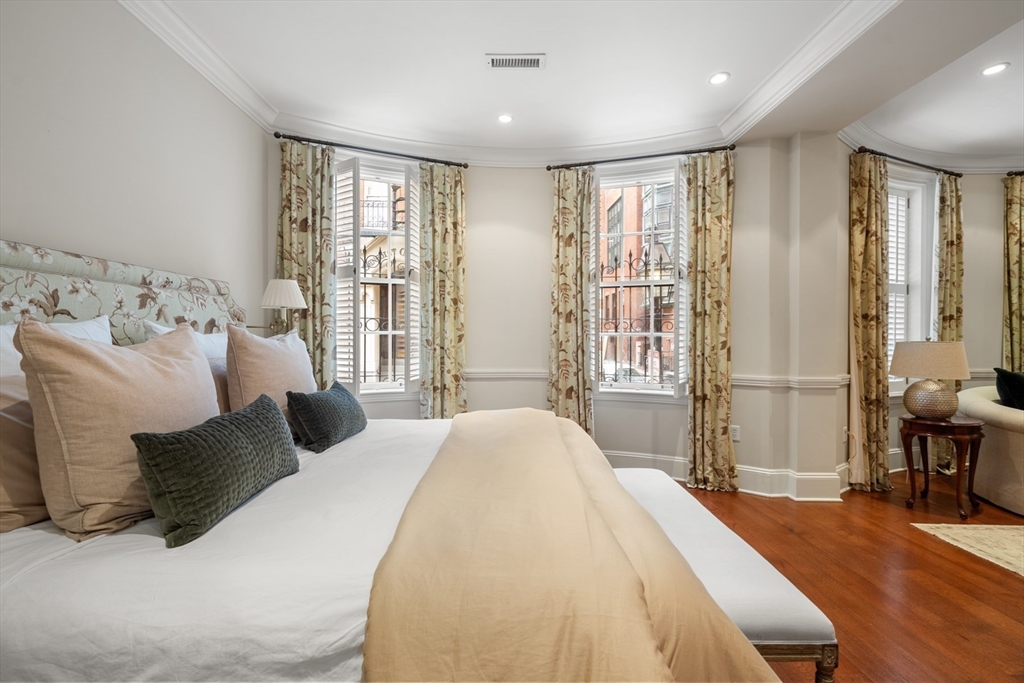 This sensational duplex condo, with 17 windows on the parlor level alone, is located within The Armory - a distinguished concierge building at 50 Beacon St in Beacon Hill featuring only 5 residences. Offering a private townhouse style entrance on picturesque Spruce St., the grand spaces welcome you upon entry and are alluring & inviting. Guests will be in awe of the volume & elegance as the expansive living and dining spaces w/ 12 foot ceilings evoke wonder due to rarely seen architecture & scale. Beautiful millwork, gas fireplace, warm hardwood flooring all add to the graceful space. Standout features include a handsome library w/ wood paneled walls-a distinguished home office. A wonderfully laid out, oversized kitchen w/ notable appliances & pantry adjacent to a fantastic "den" allows for casual dining & cozy entertaining options. A luxurious primary suite w/ seating area offers 2 walk-in closets & an opulent bathroom. Two addt'l large bdms w/ en suite baths, powder room, storage.