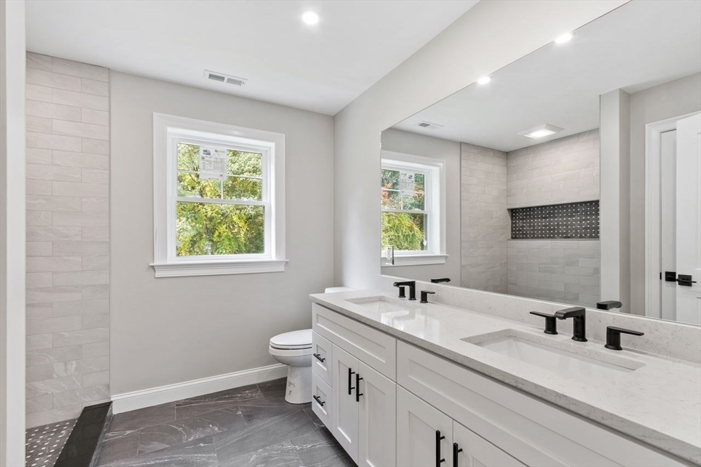 Bright and inviting new construction 4-bedroom colonial nestled on a spacious 3/4 acre wooded lot with a 2-car attached garage. This thoughtfully designed home features an open-concept layout that blends modern function with timeless charm. The gourmet kitchen features quartz countertops, stainless steel appliances, a large island, walk-in pantry, and seamless flow to the fireplaced living room as well as a flexible additional room that can serve as a home office or formal dining room. On the 2nd floor you will find the primary suite with 3/4 bath as well as 3 additional bedrooms, laundry and guest bath. The finished basement is ideal for a family room, game room, or additional living area. This home combines modern finishes with practical living spaces, making it perfect for families and those who value comfort, & versatility. Great commuter location with access to 93 and within a 1/2 mile to the commuter rail.