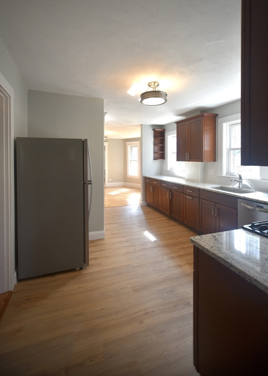 RENOVATED , ALL NEW ,SPACIOUS, 3 BEDROOM , IN THE MOST DESIRABLE NEIGHBORHOOD IN WINTHROP ! Sunfilled , 3 bed, gleaming hardwood floors throughout, brand new kitchen and tiled bathroom new washer and dryer laundry in unit. Plenty of storage, extra storage in basement. All NEW energy saving utilities , CENTRAL A/C, Exclusive private front porch. Walking distance to downtown Winthrop Center, shopping, bars, restaurants, entertainment, dining, and so much more. Winthrop has miles of Beaches, State of the art new schools, Yacht clubs and Marinas for boating, amazing restaurants, biking and hiking trails, such an easy commute to downtown Boston, Bus stop at the top of the street, just minutes to Orient Heights T-Station and just minutes to Downtown Boston , and Easy access to the North Shore. Off street parking during snow emergencies and street sweeping. Pets are negotiable