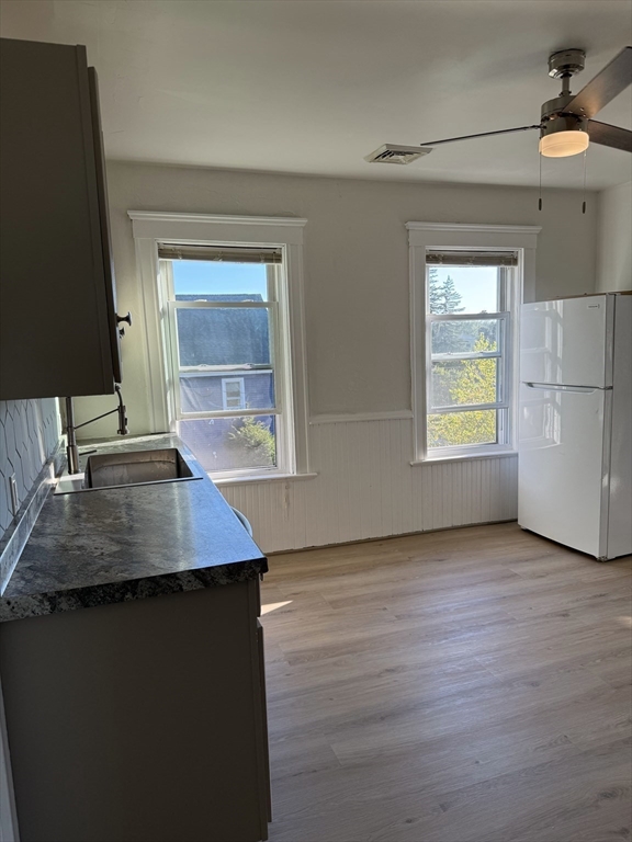 Bright & airy, fully deleaded, 3 Bed, 1 Bath unit near Turbesi Park. Recently renovated third-floor unit with great natural light and plenty of space. Updated kitchen with gas stove, vent, dishwasher, refrigerator, garbage disposal and plenty of cabinets. Updated bathroom with shower/tub combo. Freshly painted and new flooring throughout. Updated ceiling fans in most rooms. There is a large, private front porch for tenant use only. 2 off-street, tandem parking spaces. Private storage area and laundry hookups available in basement (tenant to supply their own washer/dryer). Water, snow removal, trash and recycling pickup included. Tenant responsible for all other utilities. Close to shops, restaurants and the recently updated Turbesi Park providing a wonderful playground, ball fields and areas for family gatherings. Sorry, no pets or smoking allowed. Lease term to be 1 year. All tenants subject to credit and background check. Move in requires first, last and security deposit.
