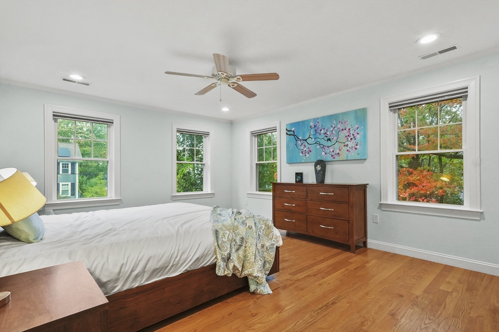 Stunning 5 year old townhouse offers luxury living at it's finest.This like new townhome has the look and feel of single family living. You can't go wrong when you buy a quality built home, by one of the areas finest building families. This home, with it's impressive accents boasts 9' ceilings, 2-piece crown mldgs, gas fireplace with inlay accent in hdwd floors, cook's kitchen with stove vented to exterior, island w/seating and gleaming HW floors on both 1st and 2nd floors. Lge prim ensuite w/dual vanitites and w/in closet plus french door to pvt den/office off prim bdrm. Separate 2nd flr laundry room along with 2 other generous sized bdrms complete the 2nd floor. Want more room...huge finished 3rd flr bonus room plus full walkout unfinished bsmt w/sliders, windows and rough plumbing for bath. Prof landscaped w/sprinkler system. Enjoy Horn Pond Recreation area at the end of the street. Commuters Dream....located near bus, minutes to hghwy, plus near many fine restaurants and shopping!