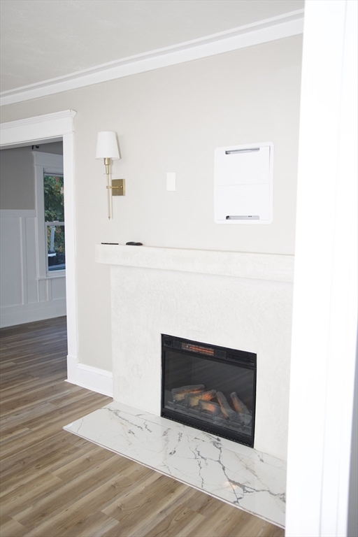 Welcome to this beautifully remodeled Colonial-style home located just steps from East Longmeadow, MA. This charming and cozy residence blends timeless character with impressive modern upgrades, offering 3 spacious bedrooms and 1.5 updated bathrooms. Inside, you'll find brand new rugs throughout the bedrooms, an inviting electric fireplace in the Livingroom area, and a spacious primary bedroom featuring two closets for ample storage. The fully updated kitchen is a standout, boasting stunning quartz countertops and stainless-steel appliances, perfect for both everyday living and entertaining. The main bathroom is a smart, spa-like retreat, equipped with a push-button shower system with three shower heads, a smart heated bidet toilet, a touch-control smart mirror, and a space-saving 2-in-1 washer/dryer. Additional upgrades include Google Nest smart thermostats for efficient climate control and a balcony enhanced with permanent LED string lighting.
