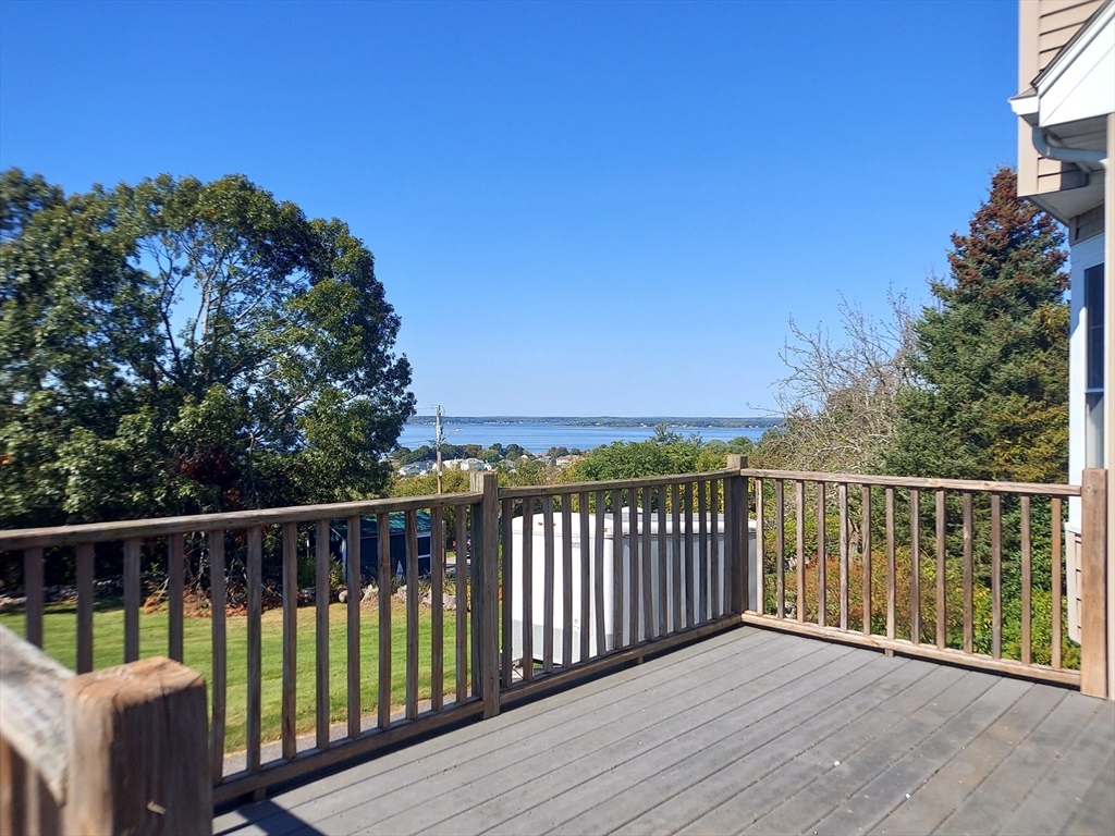 Hidden Gem near Tiverton line. Custom built for Owner - Handsomely and intentionally set to capitalize on Spectacular view of Bay and harness the western sunsets. Spacious 5 bedroom Cape. Stately front entrance and stairway. 2 full baths, hardwood & ceramic floors thru out. Kitchen with breakfast island, dining room with Sliders to Deck. (2 bedrooms, bath and laundry conveniently located on main level). Very thoughtfully planned & designed. Beautiful private backyard, 2 car Garage Under and a 3rd Detached Garage. Entrance to driveway from rear (Sampson) street. Must see inside!
