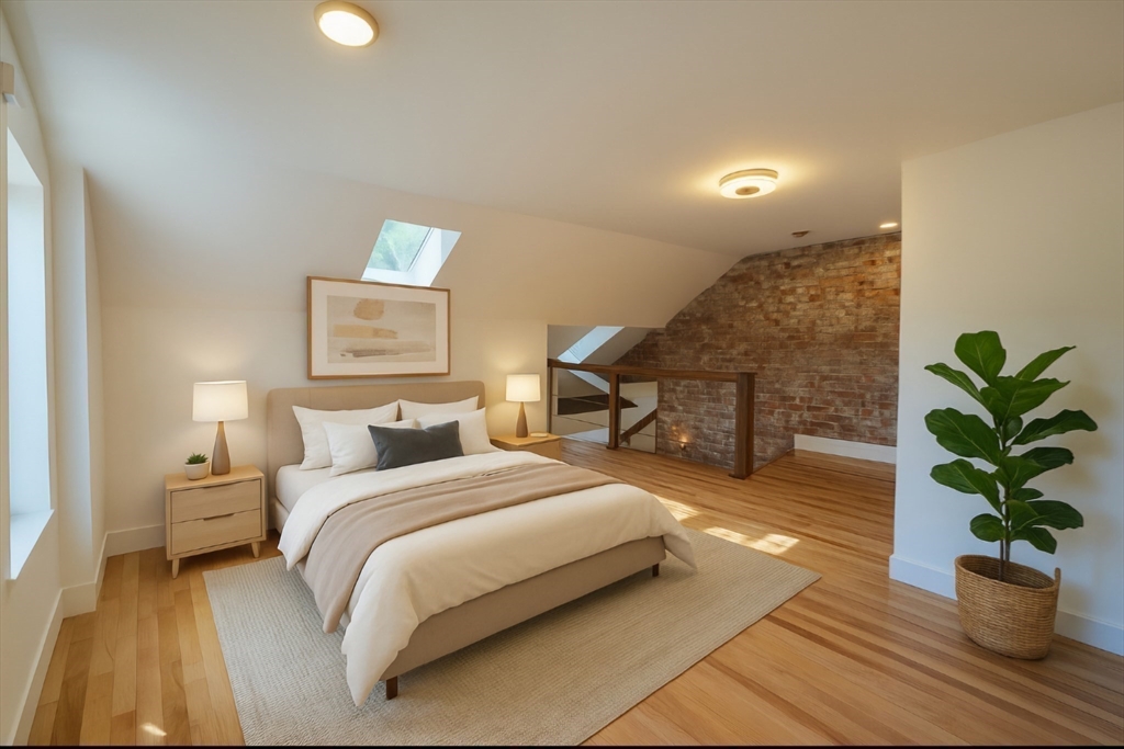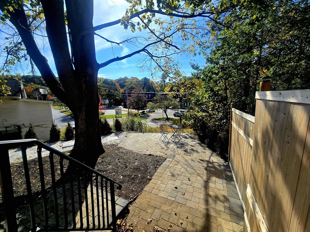 Perched high above the surrounding landscape in Bay State Village, this corner full gut rehab townhouse offers a commanding view. Maple hardwood floors flow seamlessly throughout. The bathrooms feature tile, quartz, and marble finishes that exude modern elegance, the chef’s eat-in kitchen is complete with an oversized island and top tier appliances—all included—making it ideal for entertaining or relaxing in style. Whether enjoyed with morning coffee or evening wine, the elevated patio creates a private retreat framed by skyline and treetops. The second floor features 2 bedrooms and a full bathroom complete with a new combo washer/dryer. Sunlight pours through the skylights in the full bathroom and loft on the third floor. Downstairs, a walkout basement offers endless possibilities. New ductless mini split system. Highly efficient Home. Completely Electric. Energy star certified.No association fees!