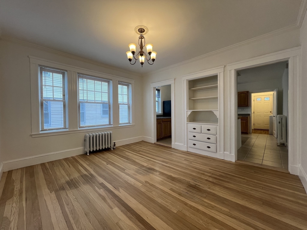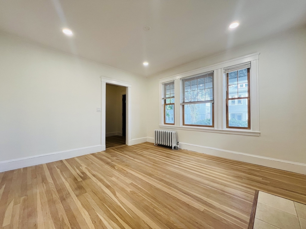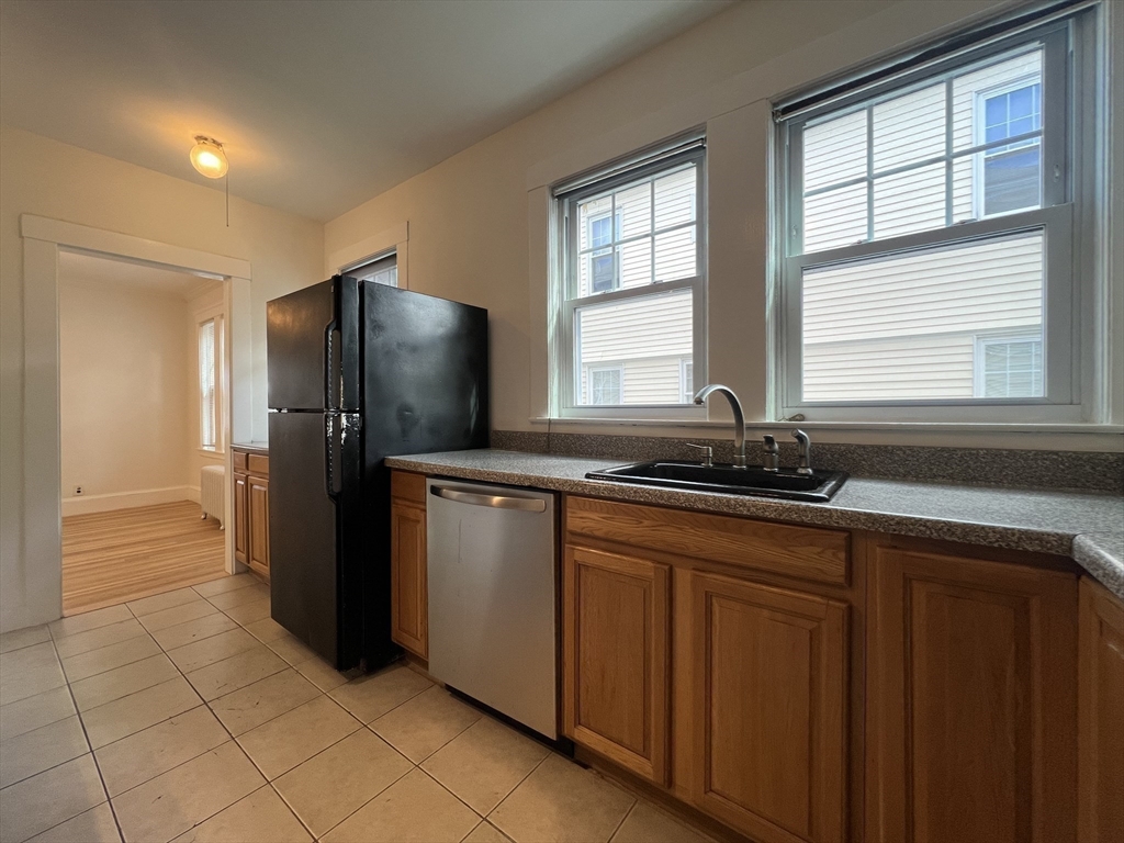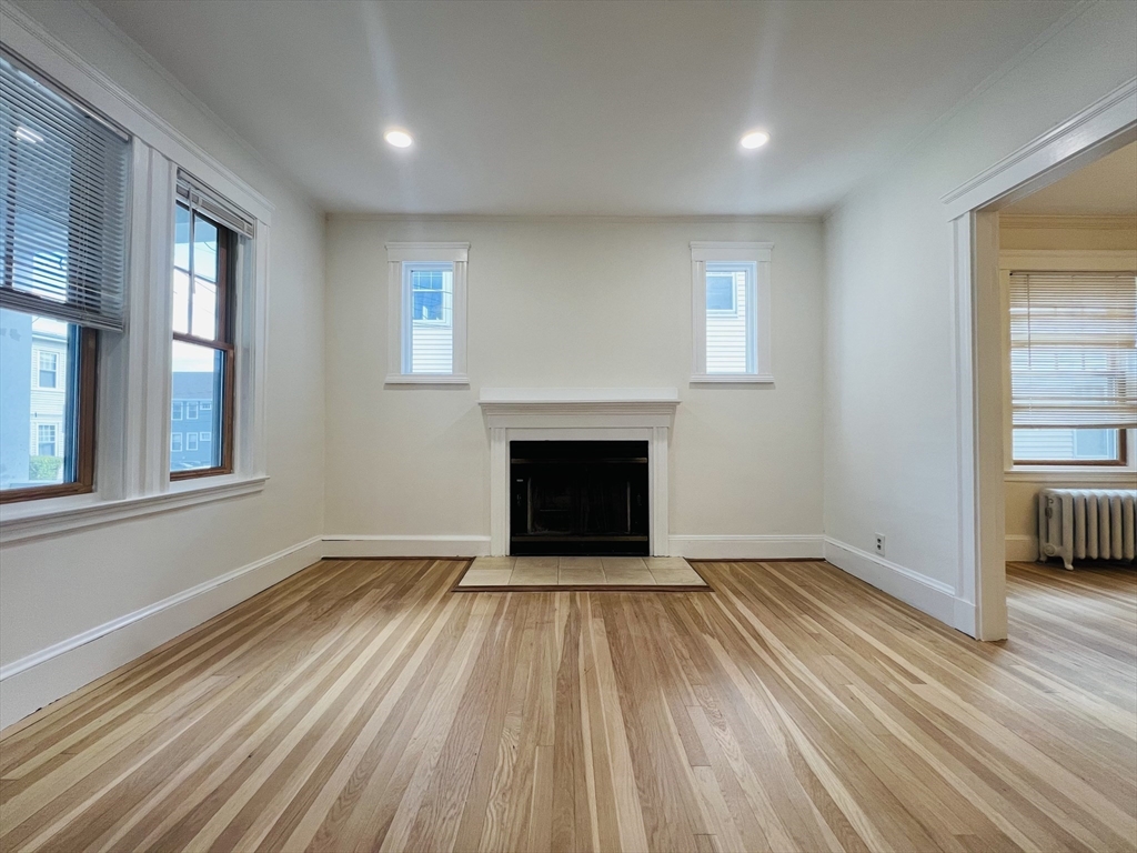 Sun-filled two-bedroom apartment right by Boston Landing! This bright and inviting first-floor home features newly refinished floors, a refreshed bathroom, and freshly painted walls throughout. The spacious layout offers plenty of natural light and a comfortable flow from room to room. Enjoy your morning coffee or unwind after work in the lovely shared backyard. Tucked on a quiet, residential street just moments from the commuter rail, shops, and dining, this home combines peaceful living with unbeatable convenience. Also includes in-unit laundry and one off-street tandem parking space.