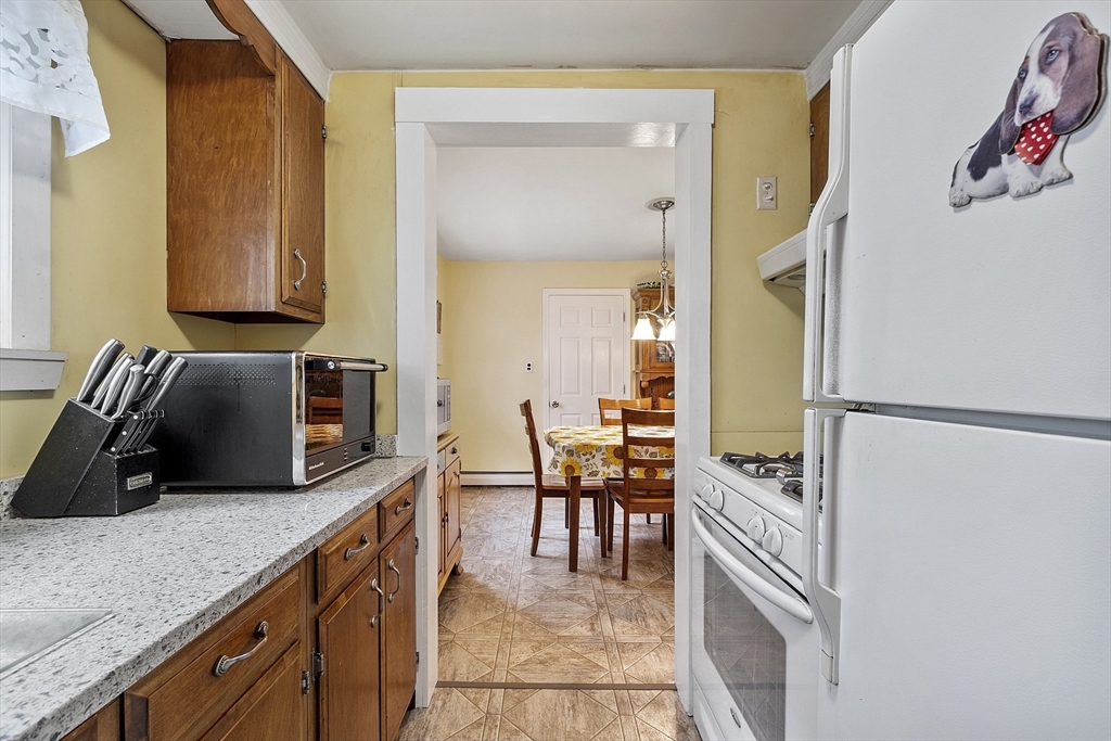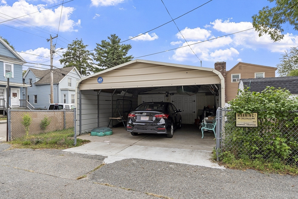 Move-in ready and beautifully maintained 3-bedroom Colonial on two parcels! The main home sits proudly with a long front pergola, fenced-in yard, and a recently waterproofed basement offering peace of mind and extra storage. The second parcel features a 2-car carport and additional storage area, perfect for vehicles, tools, or outdoor projects. Inside, enjoy gas hot water baseboard heating and a spacious layout ideal for entertaining. Ample parking includes one off-street space in front, on-street permit, and general on-street parking. Garden area and well-kept grounds complete this move-in ready gem!