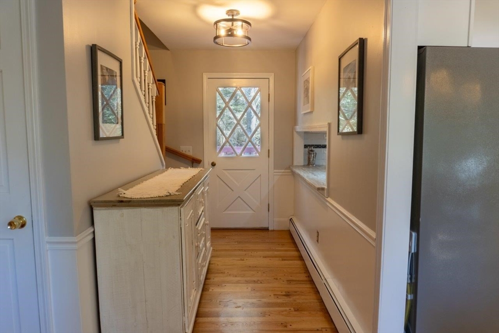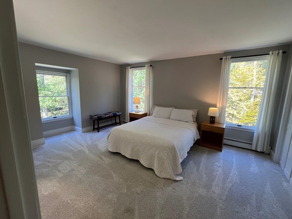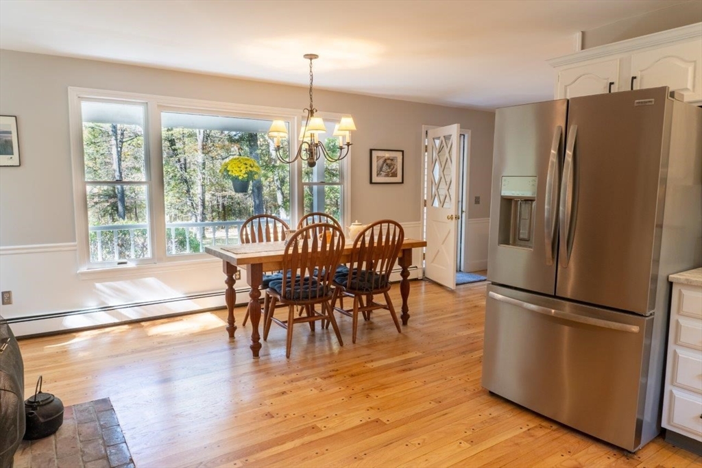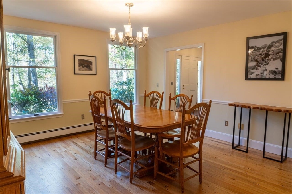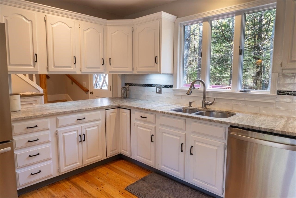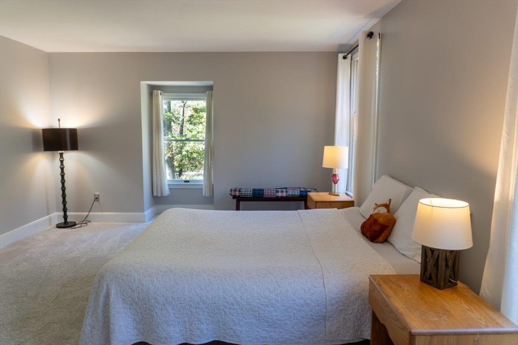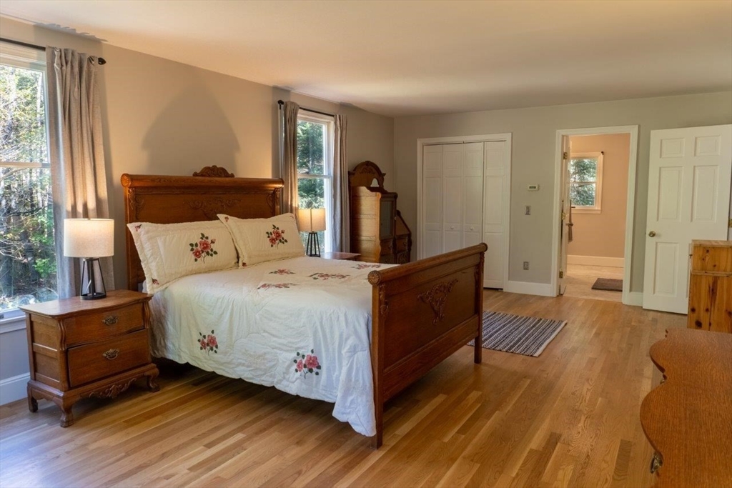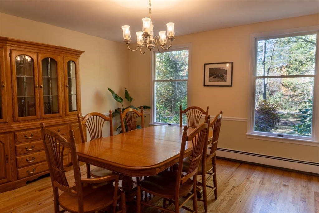 Incredibly spacious 5 bedroom home set on 15 idyllic wooded acres near the center of a quaint New England town. You'll drive up the newly paved driveway past a rock-bordered garden to a beautiful gambrel styled house with an open porch to relax on and revel in the natural setting. Enter into a massive eat-in kitchen complete with fireplace, recently remodeled with exquisite custom granite countertops and new appliances. Entertain in your formal dining room and fireplace-equipped living room which opens onto a full-length deck overlooking your wn private nature habitat. Virtually the entire interior has been remodeled: new hardwood floors, wall-to-wall carpeting, custom-tiled bathrooms with new vanities and fixtures. Massive first floor master BR with fireplace, walk-in closet, and MBa with double vanity and walk-in shower. Your home will be heated by a top of the line Buderus heater and a new indirect water heater. Just move in and relax! It's all been done for you!
