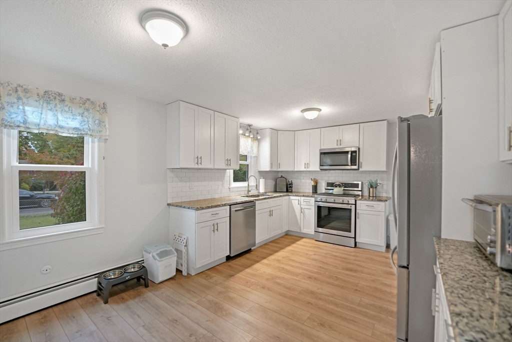 This beautifully updated 2-bedroom ranch in New Bedford's North End features approx.1,400 sq ft of GLA. One standout bonus of this home is the addition, which has its own private entryway right off the driveway. This flexible space offers a variety of uses, including a home office, family room, dining room, or even a 3rd bedroom. This home is perfectly situated just minutes from highways and the train station, while relishing in the privacy of a rare 1/3-acre corner city lot at the end of a dead-end street. This rare lot has approx. 254' of frontage on two streets, a fenced-in yard complete with a shed featuring electric, and off-street parking. Recent upgrades include all-new Energy Star-rated triple-pane windows, a newly renovated eat-in kitchen and bathroom, a ductless mini-split air conditioner, and an upgraded 100-amp panel, including a whole-house surge protector. A bonus is the laundry room on the main level, which is a must for those seeking true one-level living.