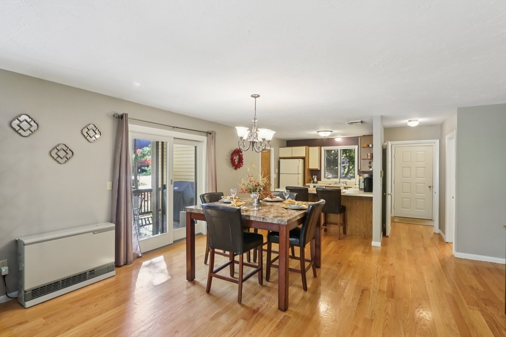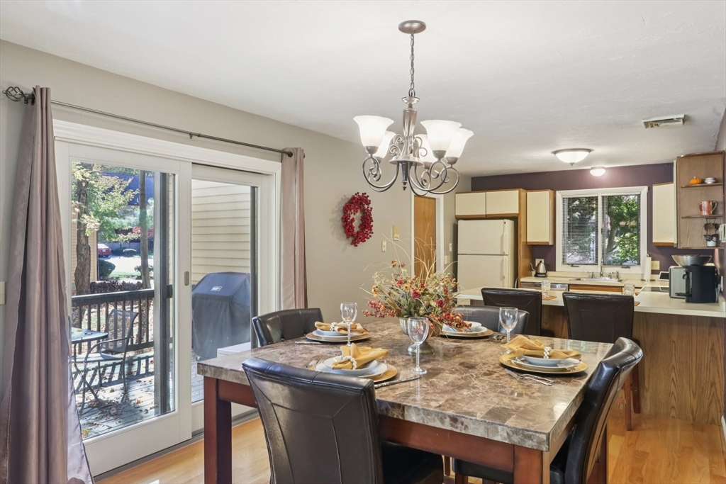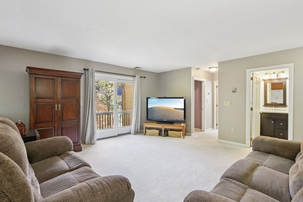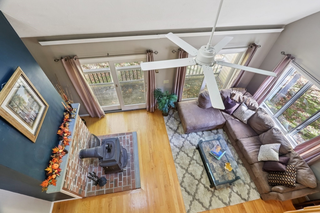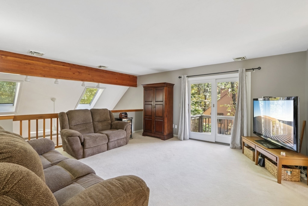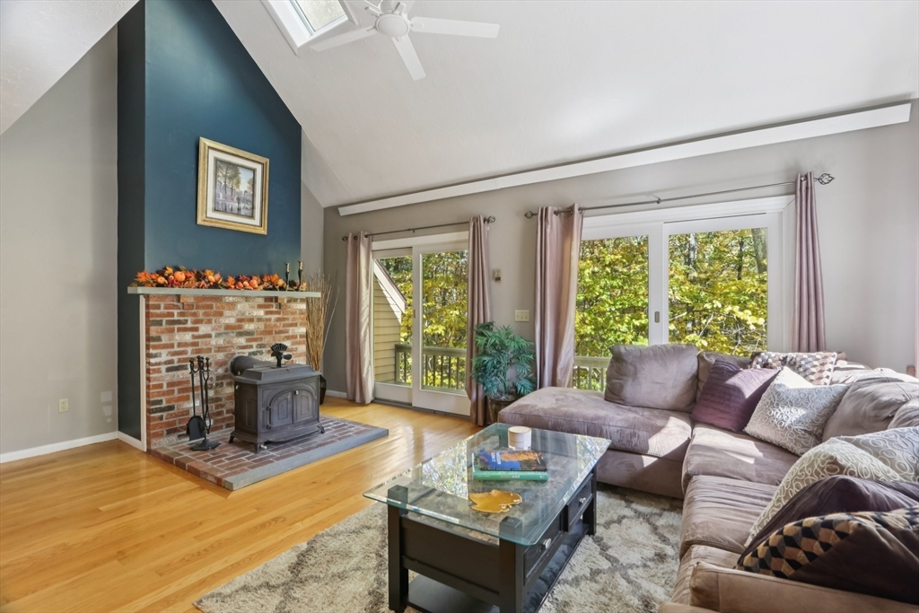 Wonderful opportunity for a lucky Buyer in the desirable Forge Hill Condominium Complex, which boasts very little turnover. Fabulous location within minutes of 495 and the commuter rail. This Townhouse end unit provides gorgeous wood floors on first floor, cathedral family room with a wood burning stove for cozy nights, all new sliders to multiple outdoor deck space and a new modern ceiling fan. The kitchen has direct access from garage, open to living area, with an oversized peninsula, great for entertaining and a newer stainless dishwasher. The half bath has been tastefully remodeled. 2nd floor offers a spacious loft, use as den, office or occasional guest room, also a full remodeled bath. The primary bedroom has a private deck, full wall of closet space, and a private full bath. Need a hobby room, home office, exercise space, or another family room? Bring your imagination & create your own in the spacious unfinished basement and add value to your unit!