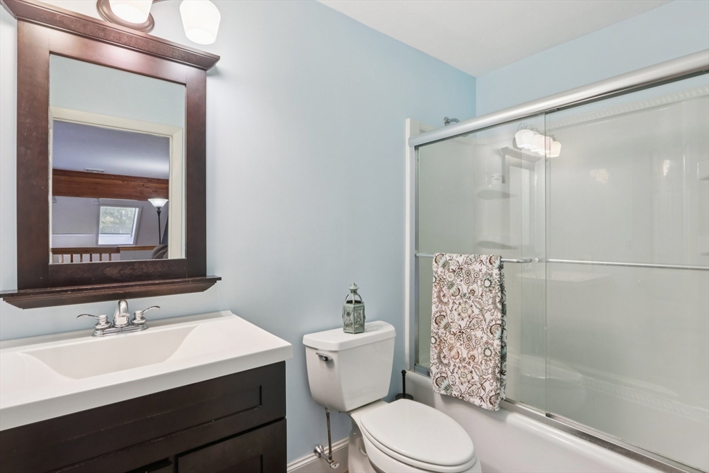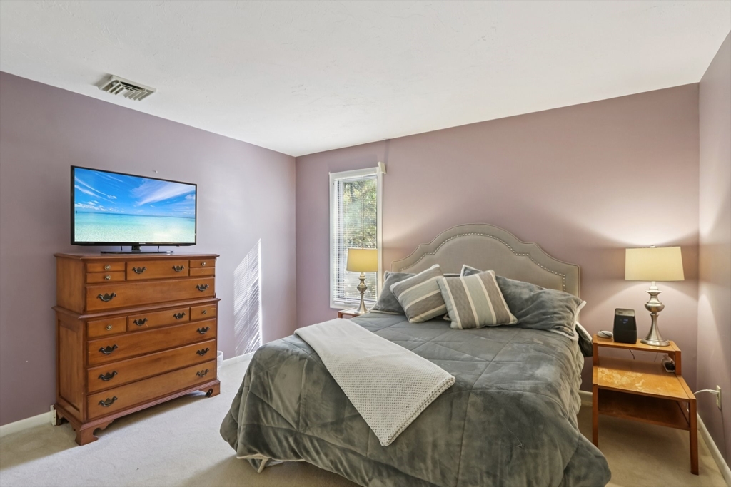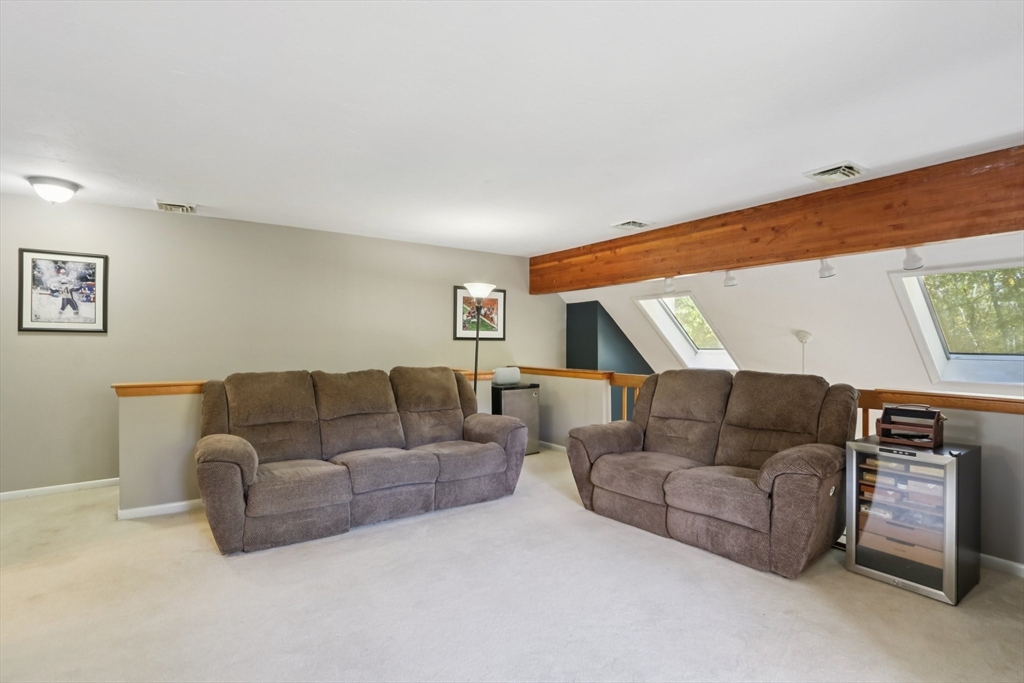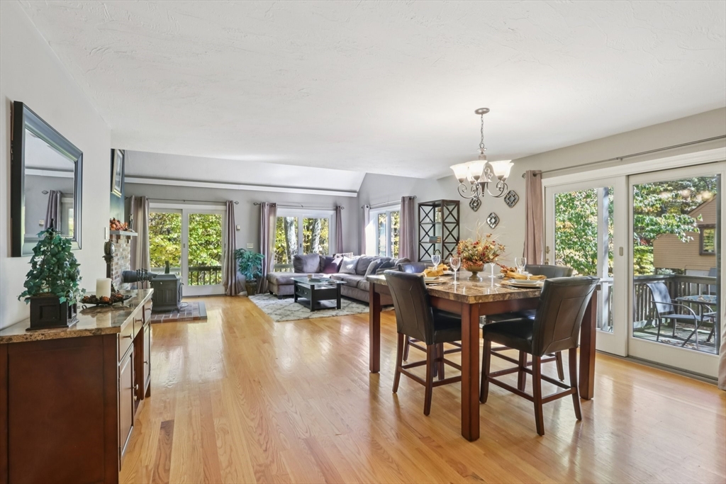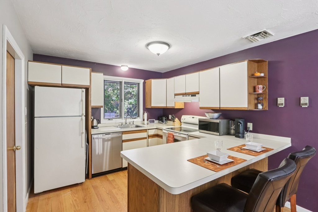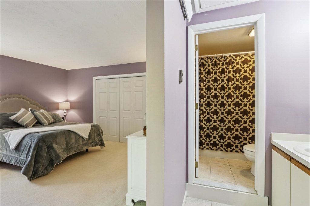 Wonderful opportunity for a lucky Buyer in the desirable Forge Hill Condominium Complex, which boasts very little turnover. Fabulous location within minutes of 495 and the commuter rail. This Townhouse end unit provides gorgeous wood floors on first floor, cathedral family room with a wood burning stove for cozy nights, all new sliders to multiple outdoor deck space and a new modern ceiling fan. The kitchen has direct access from garage, open to living area, with an oversized peninsula, great for entertaining and a newer stainless dishwasher. The half bath has been tastefully remodeled. 2nd floor offers a spacious loft, use as den, office or occasional guest room, also a full remodeled bath. The primary bedroom has a private deck, full wall of closet space, and a private full bath. Need a hobby room, home office, exercise space, or another family room? Bring your imagination & create your own in the spacious unfinished basement and add value to your unit!