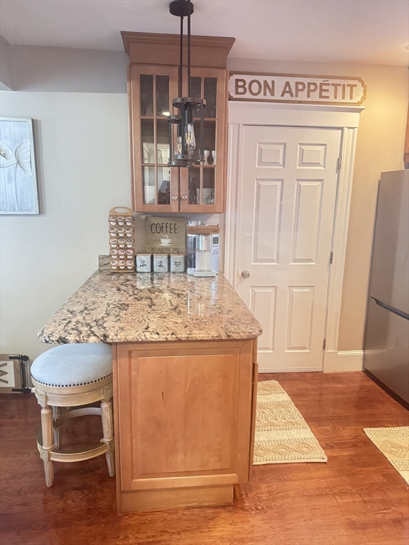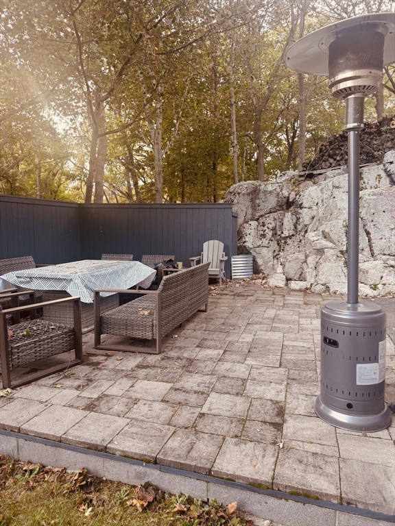 This fully renovated Colonial boasts old style charm W/ modern sophistication, creating a very welcoming home. The first floor features an open-concept layout with a stunning new kitchen, with high-end granite countertops, New maple cabinetry, a spacious island, and stainless-steel appliances, including a dishwasher & built-in microwave. The kitchen flows directly into the dining room, enhanced by custom crown molding and a pretty chandelier. The expansive living room, anchored by a stone fireplace, offers the perfect setting for cozy evenings or elegant entertaining. An updated half bath and a grand entry foyer complete the main level.3 generously sized bedrooms upstairs all w/gleaming hardwood floors. Add a beautifully updated marble bathroom, featuring a Jacuzzi tub and shower. Outside, a private, fenced backyard awaits with a charming patio and built-in fire pit, ideal for crisp fall evenings. On a lovely street and just Minutes to route 1 and Downtown Saugus.