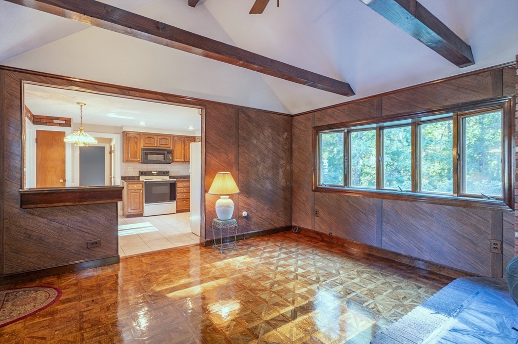 This well-maintained home is nestled on a generous lot with ample off-street parking on a quiet street. Inside, discover beautifully refinished hardwood floors that shine throughout the main level, upper floor, and hallways. The kitchen has granite countertops and tile flooring as well as 1st floor bathroom. Includes 4 BRs—3 upstairs and 1 conveniently located on the main level—along with 2 full bathrooms. The upstairs bath has been tastefully updated with modern finishes. Whether you’re relaxing in the cozy sitting room with a gas fireplace or enjoying the ambiance of a traditional wood-burning fireplace in the living room, you’ll feel right at home.The partially finished walkout lower level has so much potential. Create your dream game room, media center, or home office. The expansive, level backyard offers a true retreat. Enjoy the large deck, store your gear in the 2 handy storage sheds. Located close to 93 & 1.5 miles from the T & 1 mile to Elem school.