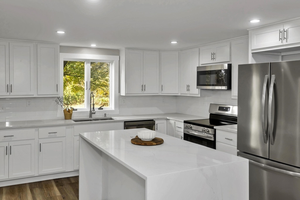 Welcome to your dream home nestled on 2.5 picturesque acres, this completely updated 5 bedroom 3 bath home offers the perfect blend of luxury and functionality! Stone walls and a large farmers porch invite you into the homes bright and airy floor plan featuring a Gorgeous kitchen with Quartz counters, island with waterfall edge, Shaker style cabinets, and high-arc kitchen faucet over dbl SS sink... perfect for a new owner that loves to entertain! The Primary suite is very impressive with 2 walk-in closets and a en-suite spa-like bathroom with rain shower head! Each bathroom has been thoughtfully renovated with modern fixtures, tile and quartz counters. Outside enjoy peaceful country living with amenities including a beautiful covered pavilion perfect for picnics with family and friends and a 28x32ft BARN that would excite any hobbyist, car enthusiast or animal lover! The barn has electricity and its own separate driveway. One of a kind property offers modern living with room to roam!