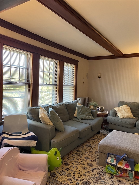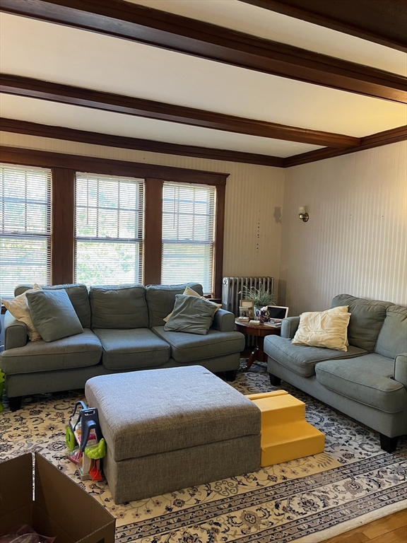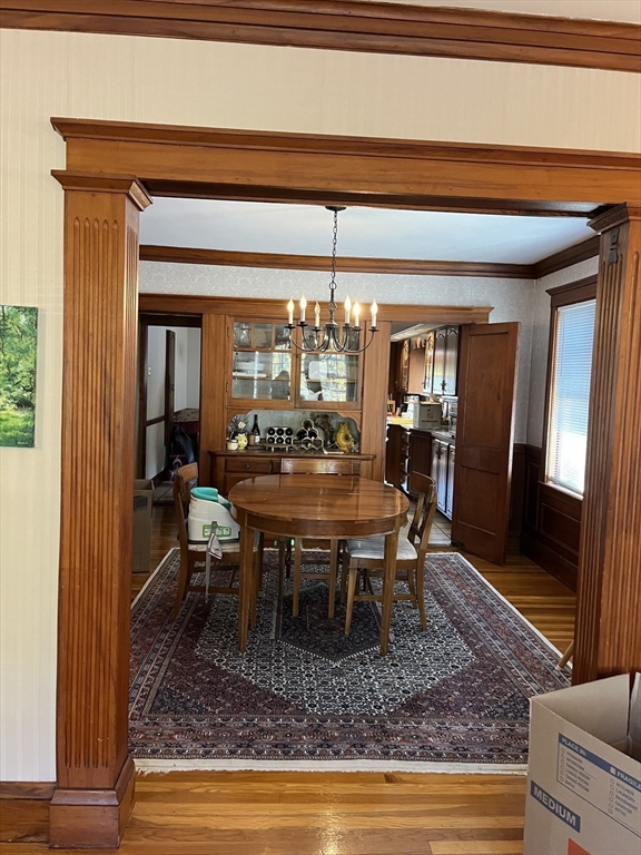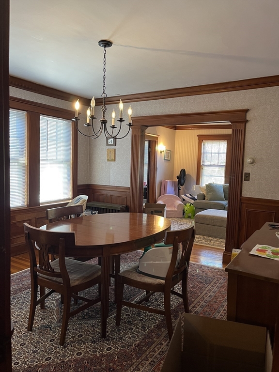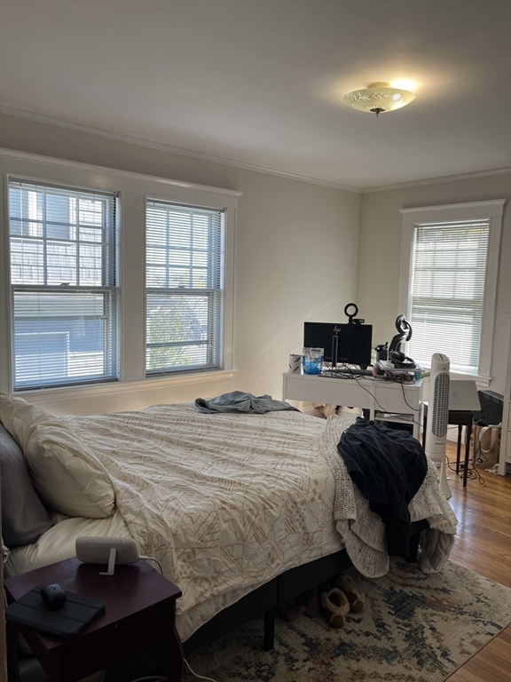 Spacious Arlington Heights 3 bedroom with a bonus room and attic storage on the third floor. The eat-in kitchen features granite countertops, beautiful cabinetry and ceramic floor. Dining room has a large built-in cabinet. Hardwood floors throughout. Exclusive washer and dryer in basement. Gas heat and newer windows.Two car parking includes one garage space. Shared yard. Unbeatable location close to Mass Ave bus and all that Arlington Heights has to offer. No fee from tenant. First and security only. No pets, no smoking. Available Nov. 15.