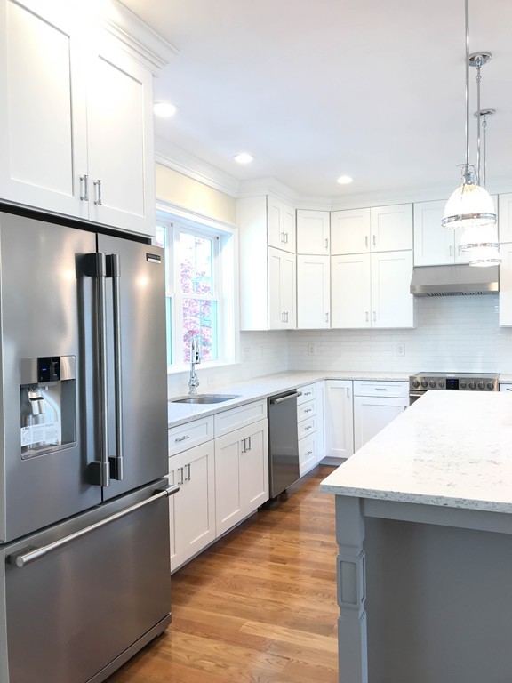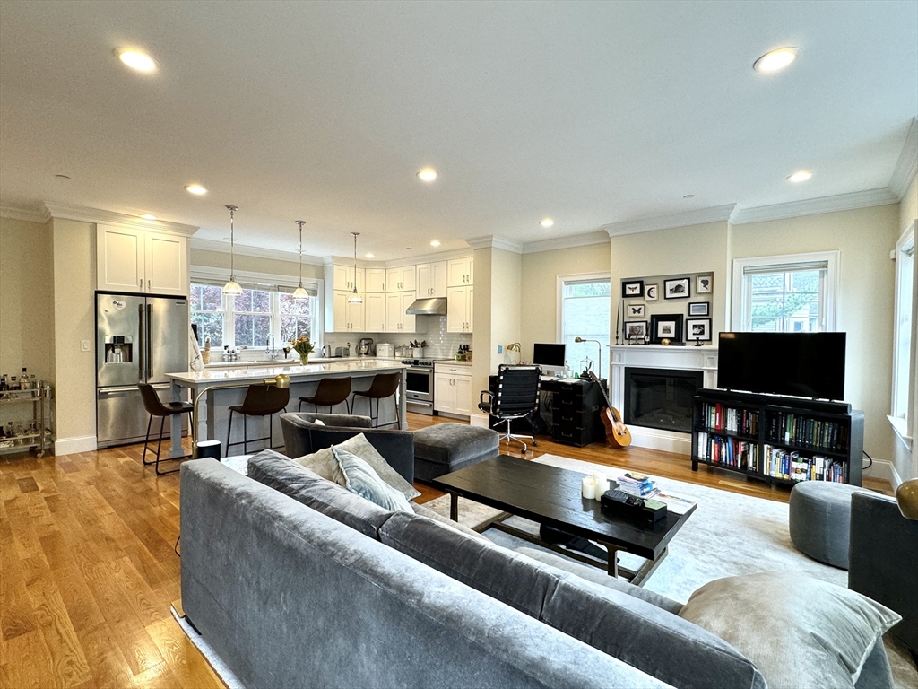 2019 Built luxury 3 BD 2 BA + 2 GARAGE PARKING 3 level townhouse with laundry and walk out patio/lawn. Walk upstairs to a modern open concept layout with a stunning, oversized gourmet kitchen with custom cabinetry, a 9 ft. granite island, and stainless steel appliances. Spacious dining area off to the side of the kitchen and corner sun filled living room with a built-in fireplace and generously sized half bath. Top floor features the master suite with walk-in closet and full spa bathroom. Two additional bedrooms included with a shared full bath tub/shower combo. Custom, designer shades installed throughout. Rare opportunity to rent new construction in this highly sought after area, surrounded by eclectic restaurants, shops, and venues. Steps to Trader Joe's. Prime location situated next to Mass Pike and Public Transportation. Centrally located near Boston's top Educational Institutions and Harvard Business School. Close proximity to Downtown Boston.