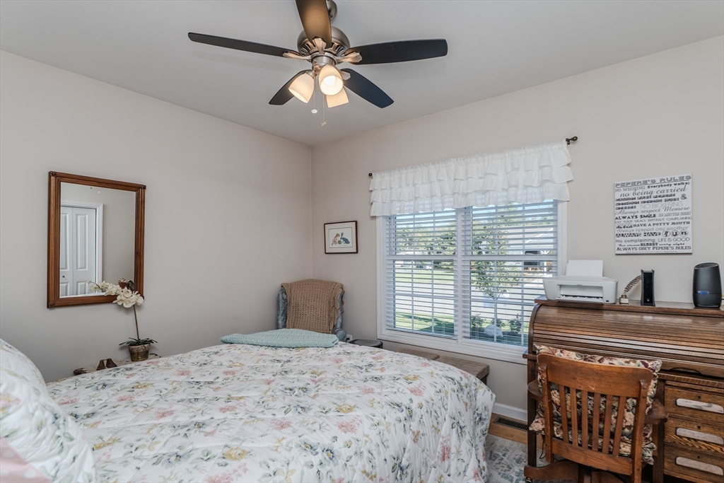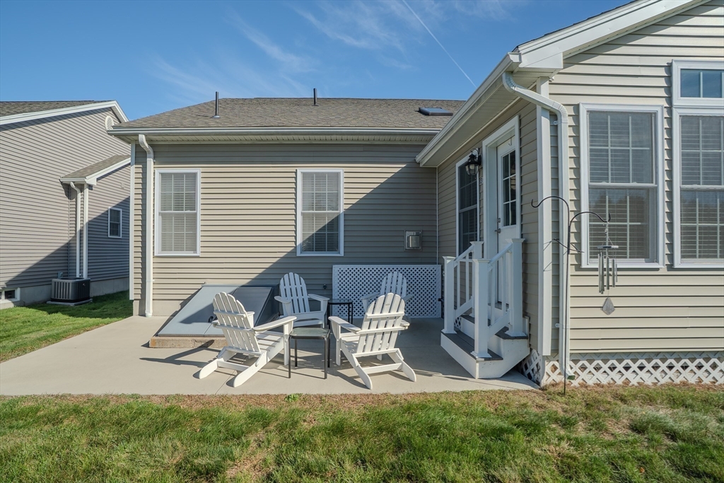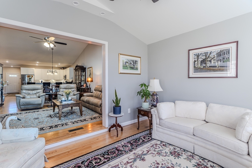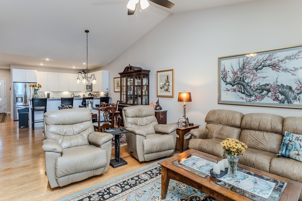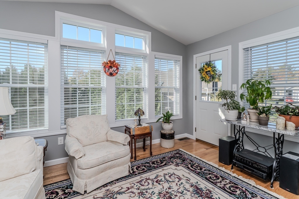 Welcome home to this beautifully maintained, one floor living, 2-bedroom, 2-bathroom condo with a spacious open floor plan. Shiny hardwood floors throughout and cathedral ceilings with skylights that bring in the sunshine. Enjoy the cozy fireplace for those cool nights. Kitchen features granite countertops, stainless appliances (double oven) and under the cabinet lighting. Enjoy extra living space in the bright 4 season sunroom which leads to a private patio. The primary bedroom offers 2 closets; one is a walk in, a full bathroom with a walk-in shower and double vanity sinks. The second full bathroom offers a walk-in shower and a washer/dryer. The spacious full basement offers lots of opportunity with shelving and be sure to check out the bonus wine room for the wine enthusiasts! Pull right into your attached one car garage which will help keep you and your groceries warm and dry. This quiet, well-maintained community offers comfort and convenience for a low-maintenance lifestyle.