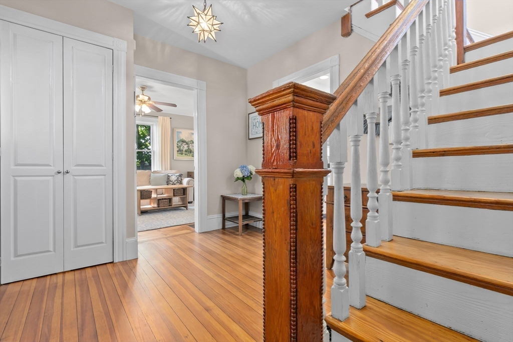 Water views! Hidden in plain sight, this spacious Colonial sits on one of the most unexpected lots near Beverly’s waterfront. Just steps from Independence Park’s sandy beach with sunrise views and summer fireworks over the harbor, life here feels like a seaside retreat. This home offers both serenity and connection. The fenced yard feels private and expansive, perfect for gathering around the fire pit or unwinding on the wide, wrap around deck. Natural light pours through large windows, with a welcoming flow from the sunny kitchen to the dining and living rooms. Four bedrooms plus a 3rd floor bonus space offer flexibility for work, play, or guests. Across the street, a tucked-away park with a playground & sledding hill is a hidden gem. From here, stroll to downtown shops, The Cabot, or take the T Commuter Rail train into Boston. Everything Beverly is known for is moments away, yet you'll feel like you're a world apart. Impeccably maintained and major systems upgraded. Truly turn-key.