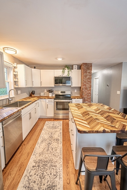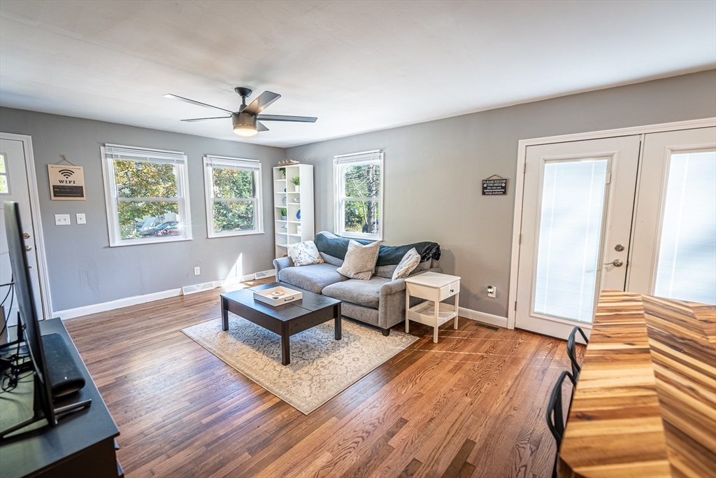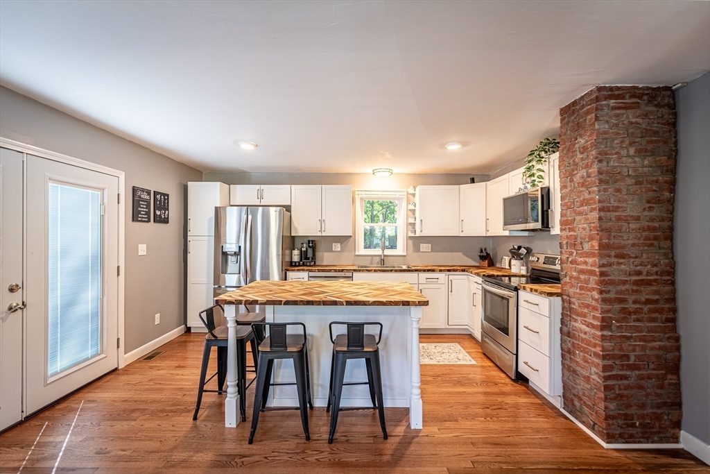 Whether you are just getting started or looking to downsize, this thoughtfully updated 3-bedroom, 1-bath ranch offers a bright open floor plan and modern comforts throughout. Step inside to find refinished hardwood floors and a seamless flow between the living room & kitchen areas—perfect for today’s lifestyle. The kitchen features butcher block counters, updated cabinetry, and a new slider leading to a brand-new deck overlooking the backyard—ideal for entertaining or relaxing outdoors.This home has been extensively improved with vinyl siding, new windows, central air, and conversion to natural gas for energy-efficient living. Additional upgrades include a new electrical panel, a poured concrete basement floor with French drains. With fresh, modern updates and classic charm, this move-in-ready home offers easy one-level living in a desirable setting. New grass has been planted in the front yard. Nothing to do but move in and enjoy!