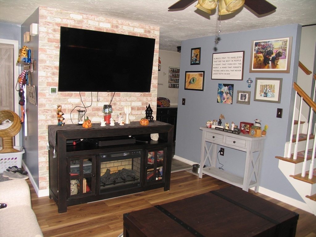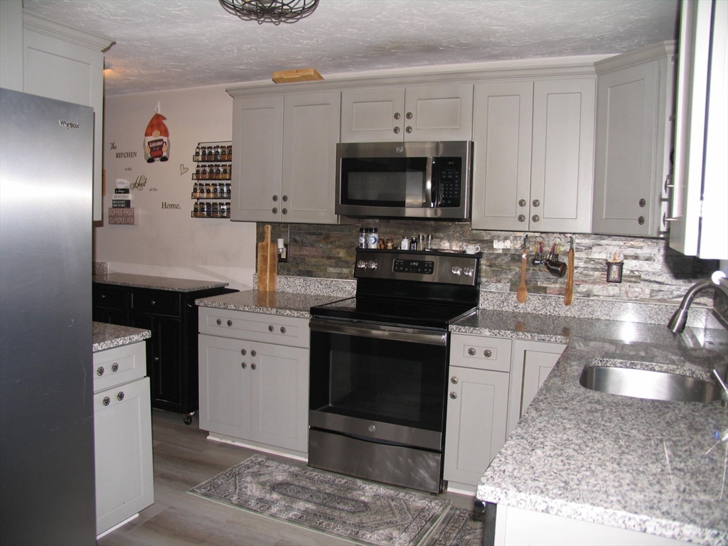 Comfortable living in this spacious end unit townhome. Seasonal picturesque views of Arcade Pond right from this townhome. Completely renovated in 2019 with the kitchen featuring stylish gray shaker cabinets w/ crown molding, Coffee Bar, Tile Floor, Granite Counters & Stainless-Steel Appliances. Updated bathrooms w/ wood plank tile flooring, lighting, new windows & doors! Spacious Master Bedroom with walk-in closet. 2nd Bedroom w/double closets. Heating System w/Central A/C new in 2019. Ready to finish Walk-out daylight basement (550sf) with direct access to parking area. Additional 2019 updates include the roof and parking area. Located just minutes from Route 146! Across from new Northbridge Elementary School. Pet friendly (with exceptions). The building is scheduled to be resided in the spring of 2026.