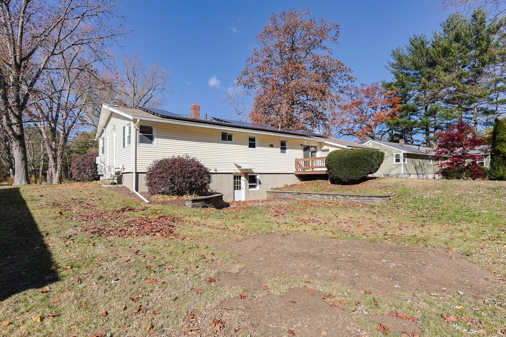 One level living in Grafton near the Common, schools, major routes, retail & restaurants is waiting for you. Home and yard have been well maintained throughout the sellers’ ownership. Upon entering, you’ll see hardwood floors in a bright open-concept space spanning kitchen and living room. Recessed lighting, and a mini split provide comfort in a functional and inviting living space. The updated kitchen boasts granite counters, cherry cabinets, hardwood floors & center peninsula with storage. Down the hall are a renovated bathroom and three bedrooms, two with mini splits. Seller states that hardwood floors are under the carpets in the bedrooms. Mudroom/breezeway is accessed from the garage, driveway and the back deck; electric heater. Washer & dryer are neatly enclosed for your convenience. Step out to the freshly painted deck that overlooks a large backyard with a garden shed. The partially finished basement with walkout offers endless possibilities. Seller owned solar panels. No lease