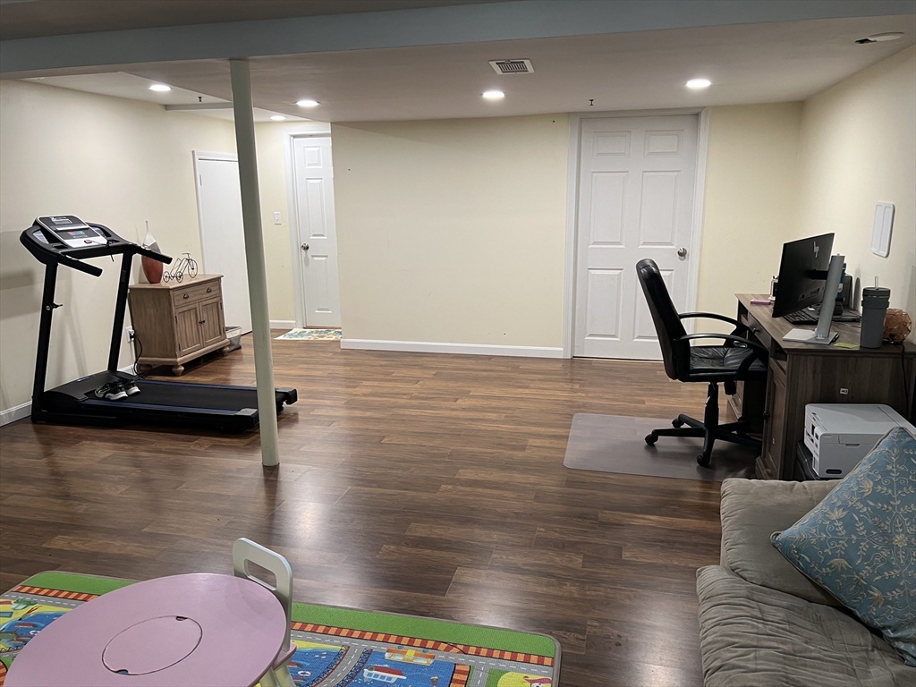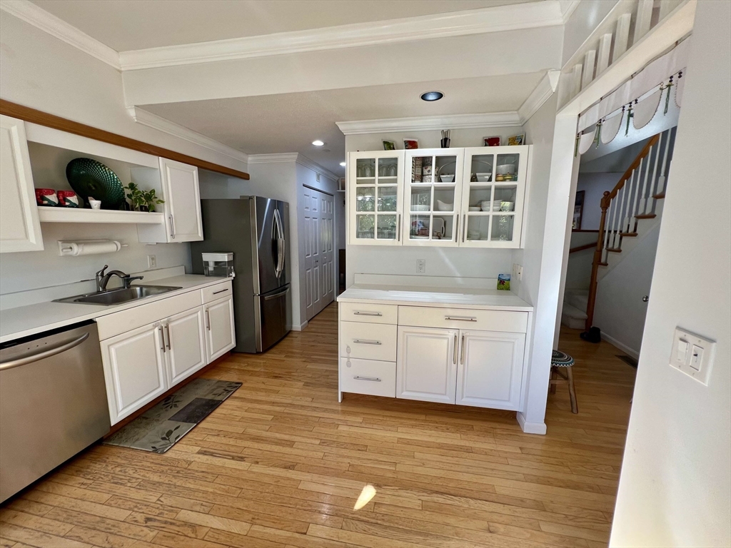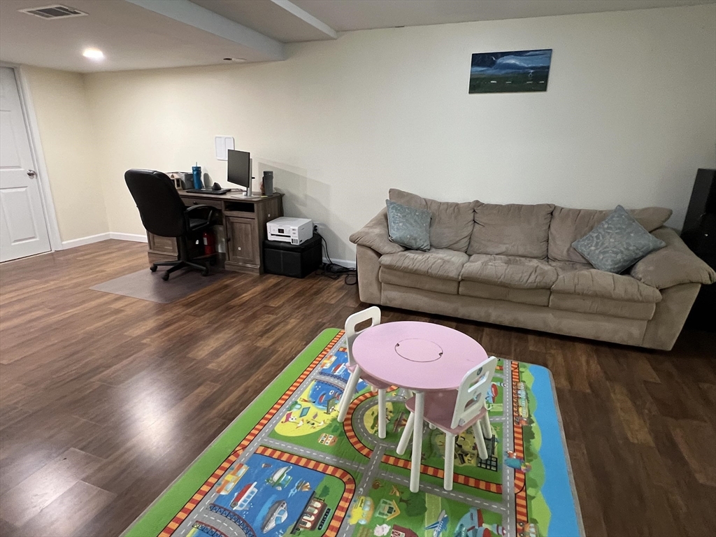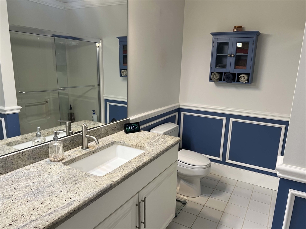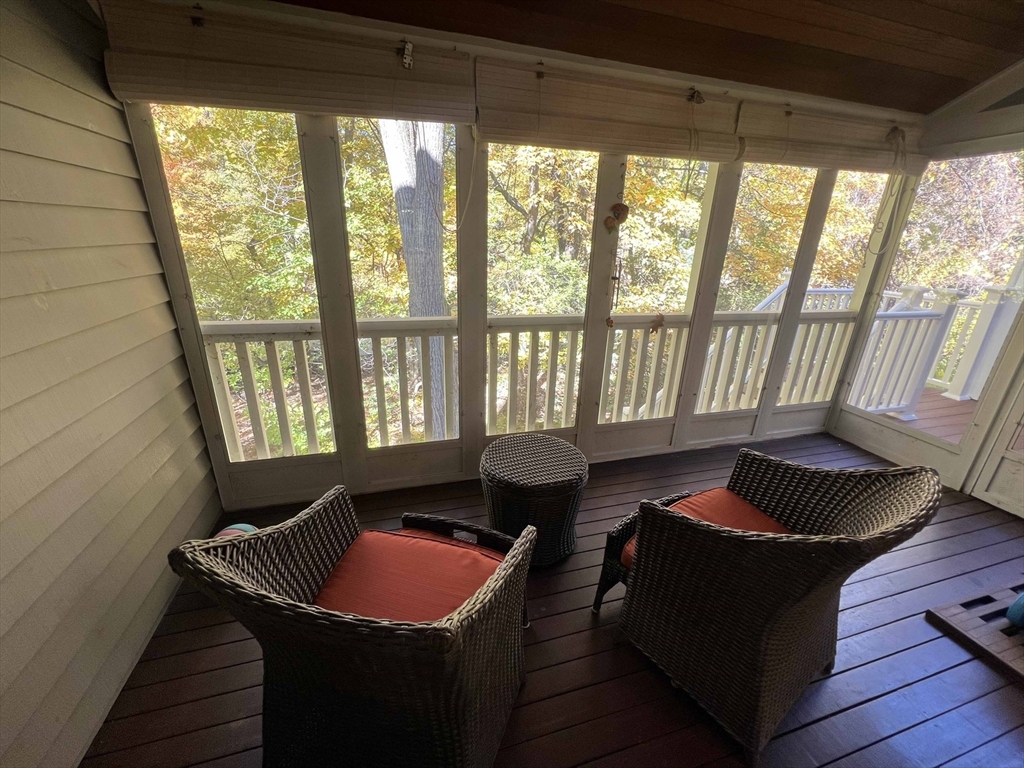Spacious townhome FOR RENT (avail. Dec 1) in a lovely setting at the Villages at Maple Ridge in Burlington, MA! The 4 levels work well for entertaining. The front porch opens to the kitchen with adjacent half bathroom w/ marble counter. The sunny, eat-in kitchen offers newer SS appliances, pantry & built-in desk. The living and dining areas have high ceilings, a gas fireplace, and access to the enclosed porch with deck w/ views of conservation land with a pond! The 2nd level has 2 bedrooms & large Jack & Jill bath with tile floors and marble counter. The 3rd floor loft is BIG, has skylights & can be an office or bedroom. Walk out lower level with newly expanded family/rec room + 3/4 bathroom + laundry room. AC too! Detached 1-car garage + 1 parking spot. Snow removal included. Convenient location with easy access to Burlington's many amenities, shops + easy highway access. Required at Lease Signing: 1st month rent, last month rent & security deposit. Good credit. No Pets, No Smoking.