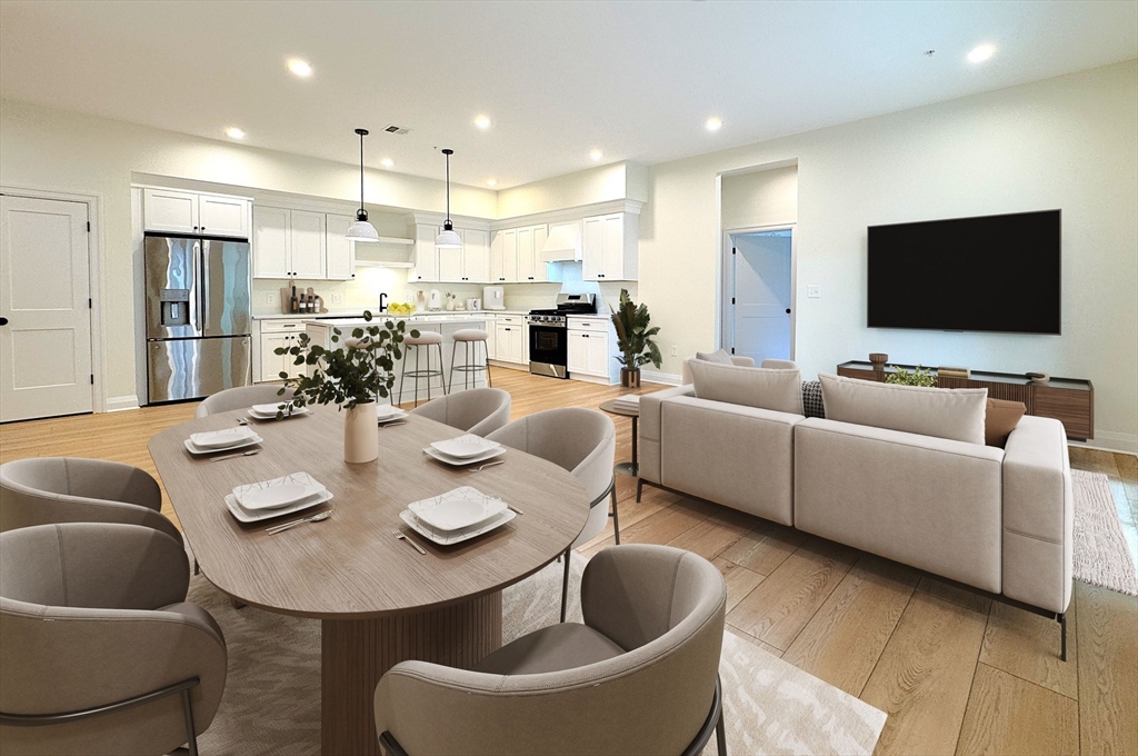 READY to Walk-Through & View in person! CUSTOM NEW CONSTRUCTION Luxury Condominiums "Phase 3" of desirable "The Residences Downtown" Modern Living in the Heart of Downtown Franklin. The luxurious 2 bedroom/office layout has a spacious Open Floor Plan, 9'-8" high ceilings, bright windows and private 88 sqft exterior balcony deck extending your living space outdoors. You'll love your Primary Suite with WALK-IN closet & tiled bathroom. The kitchen is finished with premium cabinetry, granite countertops, recessed lighting, gas range &stainless steel appliances and other luxury finishes that make it a joy for entertaining. Unit 105 comes with 1 Deeded Exterior Parking Space. Unit Owners have private entry and ELEVATOR to private common hallway. Vestibule entry has package delivery area for unit owners. All interior & exterior finishes are of the highest quality. Near commuter rail, Downtown restaurants, golf, shopping & more. Ample guest parking. Pets allowed!