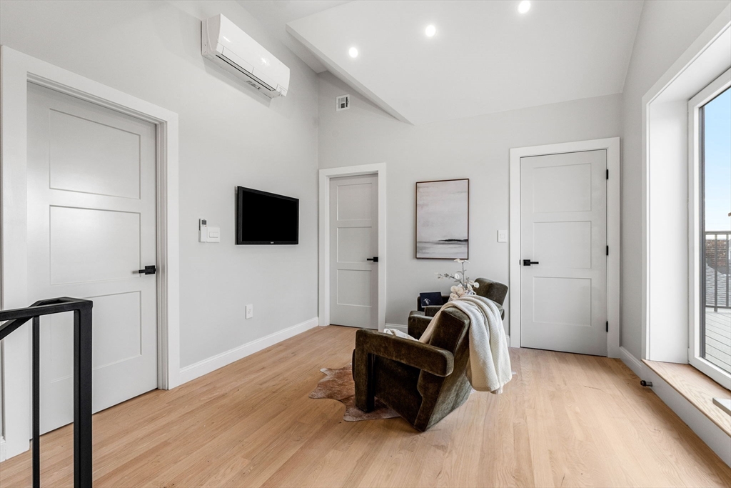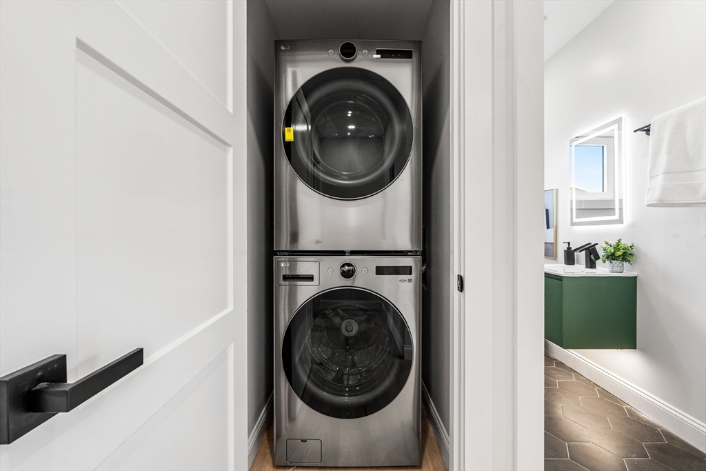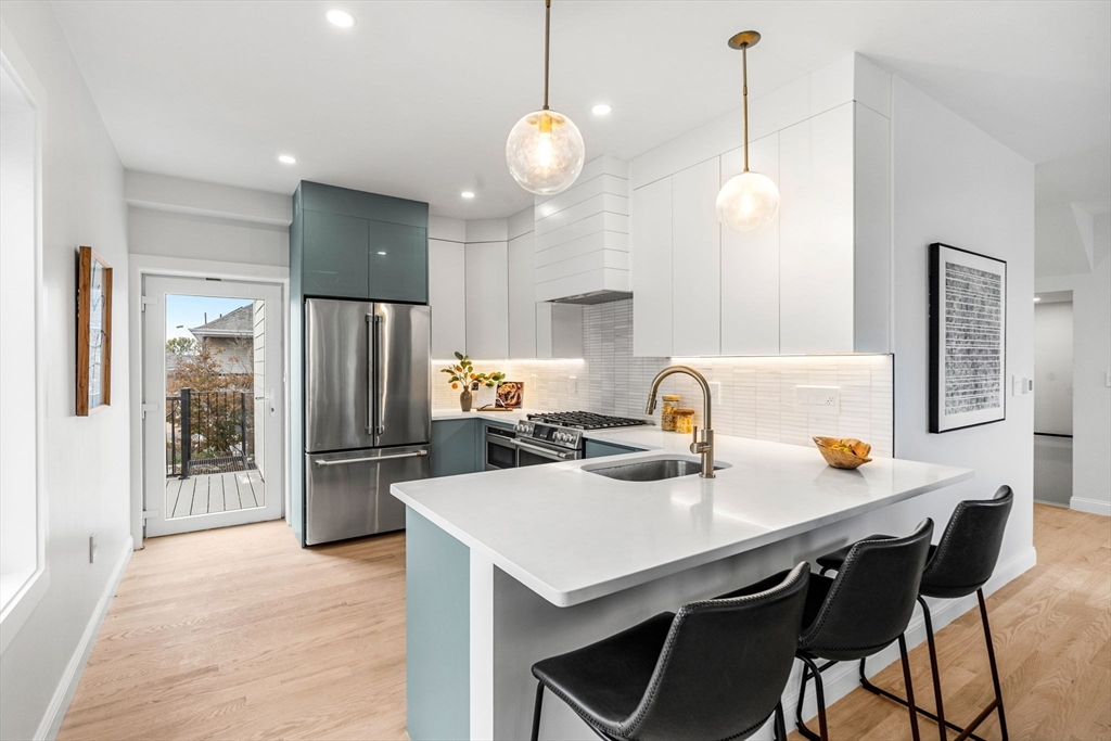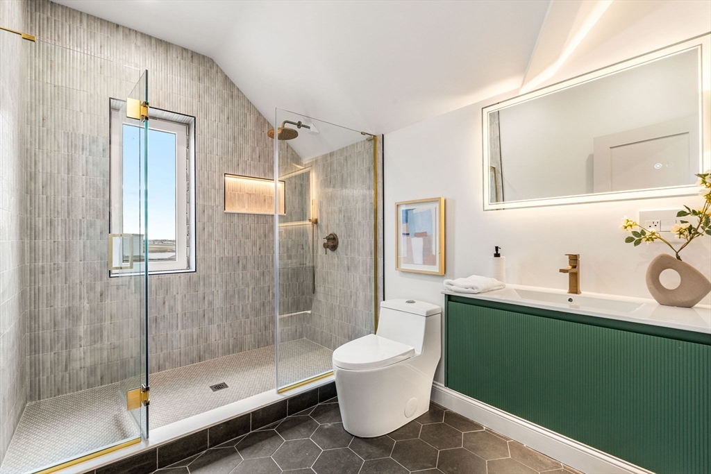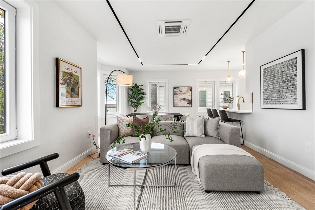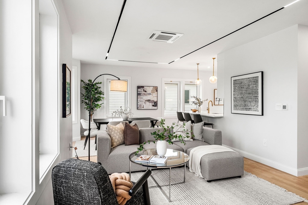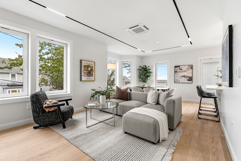 Welcome to 5 Nancia St, Unit 2 — a stunning NEW CONSTRUCTION condo in the heart of East Boston offering over 1,600 square feet of modern living space across two levels. This 3-bedroom, 3 full bathroom home blends contemporary design with thoughtful functionality. The main level features an open-concept living area, a designer kitchen featuring custom cabinetry, GE Cafe appliances & quartz countertops with access to your FIRST private deck—perfect for entertaining or enjoying morning coffee. Two good sized bedrooms on the first floor as well as the 2 full bathrooms featuring tastefully chosen fixtures and tile! The entire third floor is dedicated to the primary suite, complete with a second living room, a spa-like bathroom, and a 200-square-foot private deck showcasing breathtaking ocean and city skyline views. Complete with garage parking & additional green space, this unit is ONE OF A KIND!