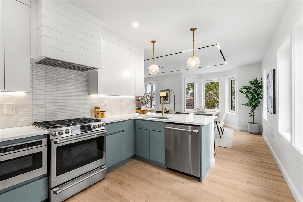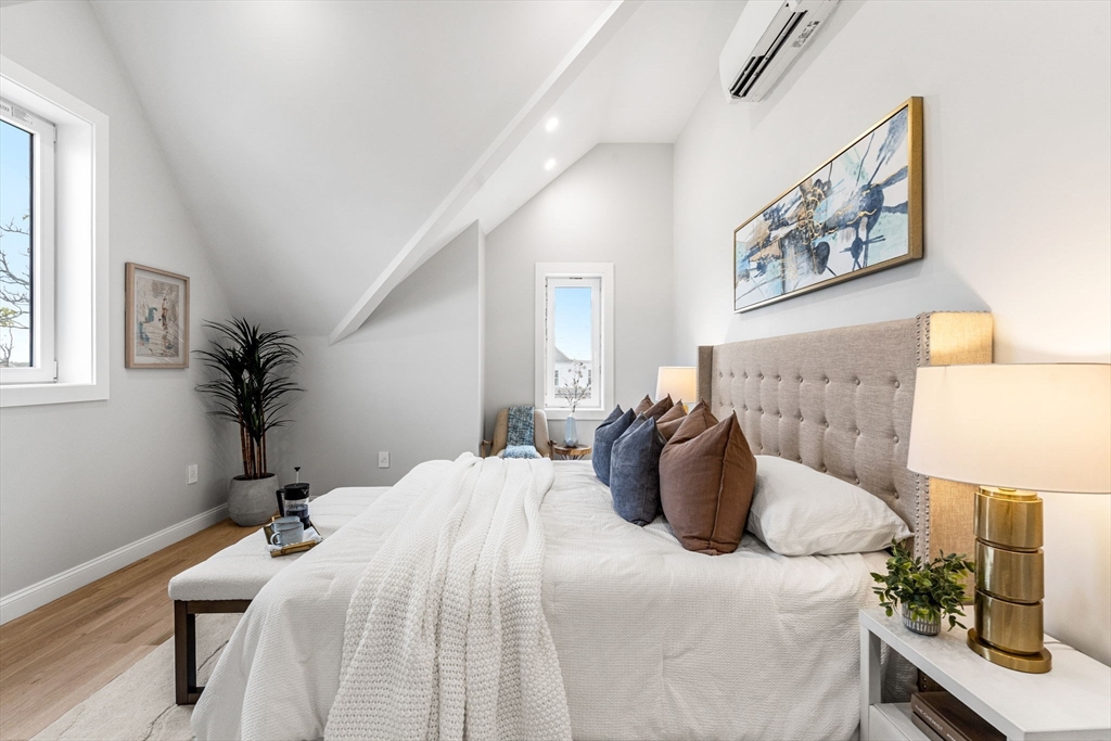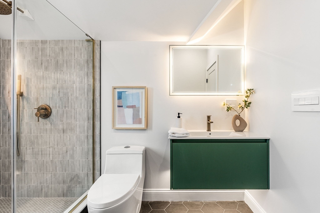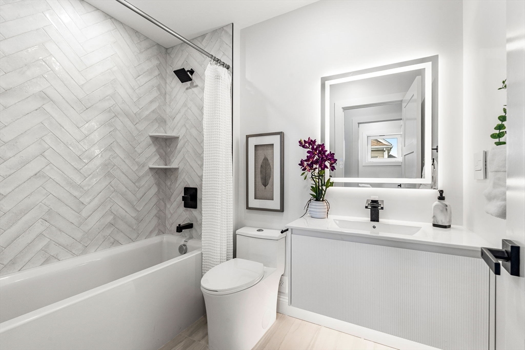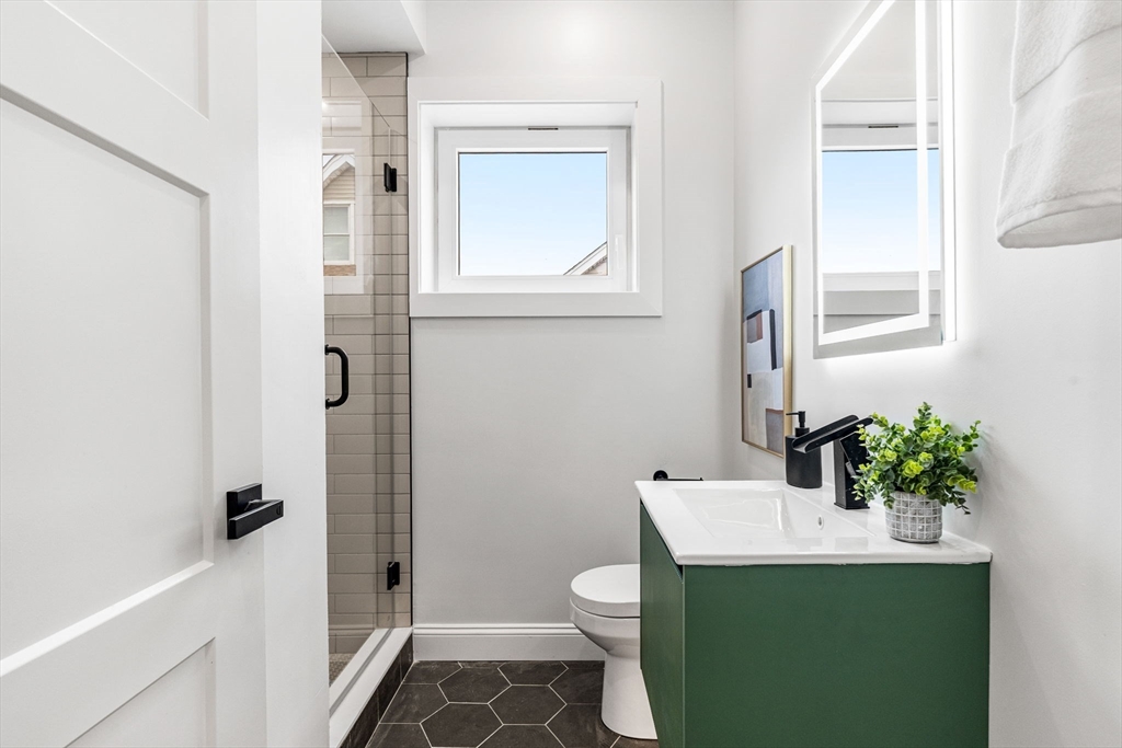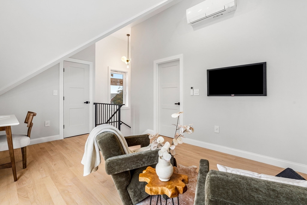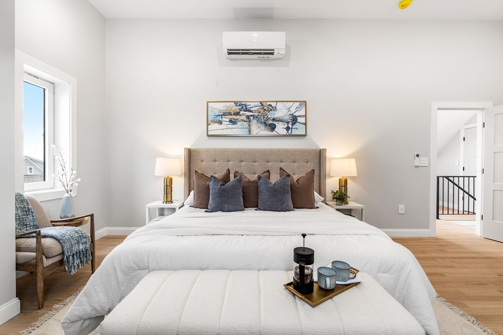Welcome to 5 Nancia St, Unit 2 — a stunning NEW CONSTRUCTION condo in the heart of East Boston offering over 1,600 square feet of modern living space across two levels. This 3-bedroom, 3 full bathroom home blends contemporary design with thoughtful functionality. The main level features an open-concept living area, a designer kitchen featuring custom cabinetry, GE Cafe appliances & quartz countertops with access to your FIRST private deck—perfect for entertaining or enjoying morning coffee. Two good sized bedrooms on the first floor as well as the 2 full bathrooms featuring tastefully chosen fixtures and tile! The entire third floor is dedicated to the primary suite, complete with a second living room, a spa-like bathroom, and a 200-square-foot private deck showcasing breathtaking ocean and city skyline views. Complete with garage parking & additional green space, this unit is ONE OF A KIND!