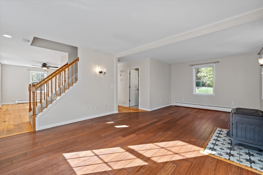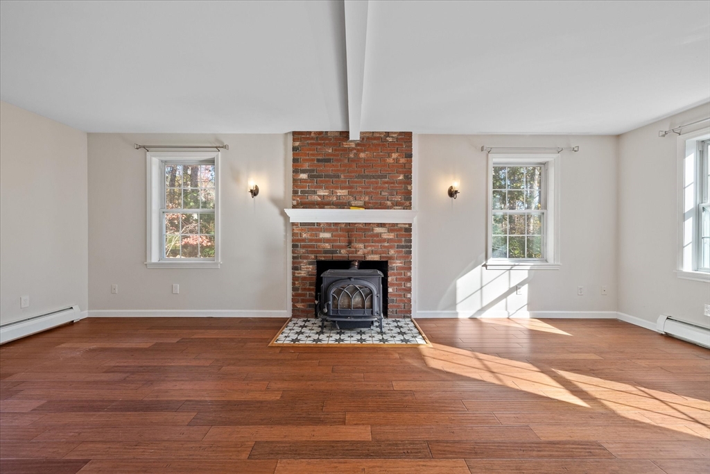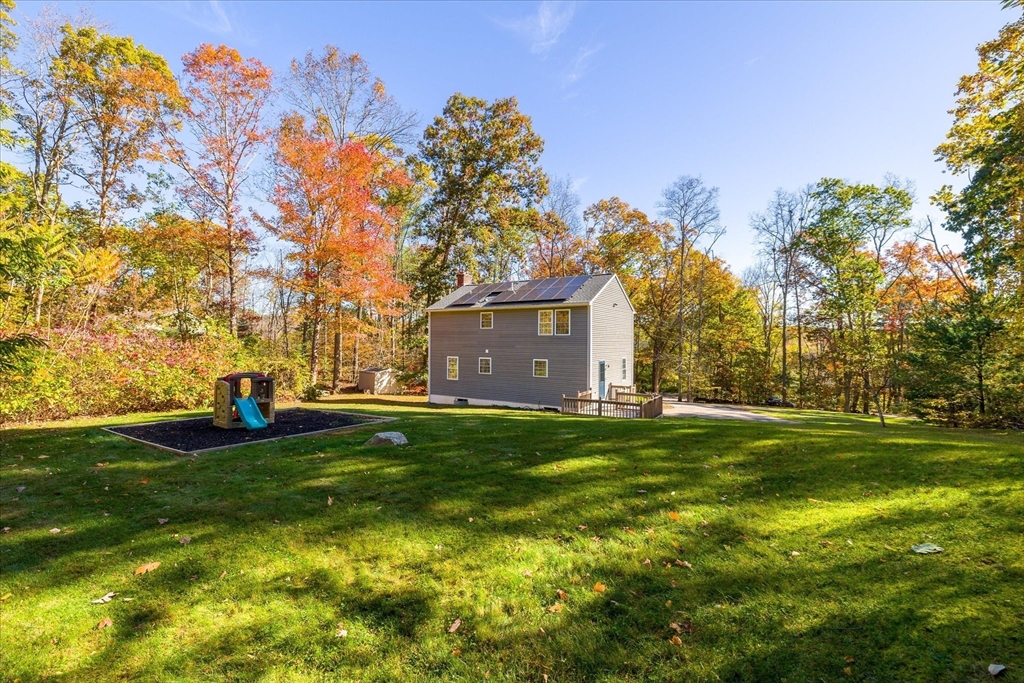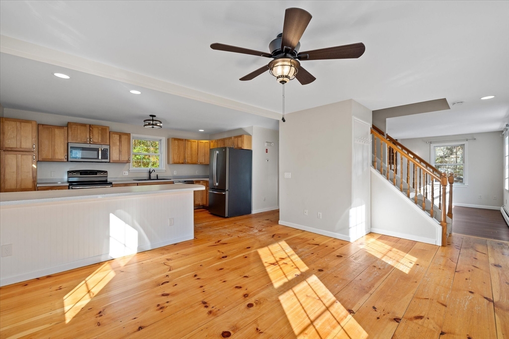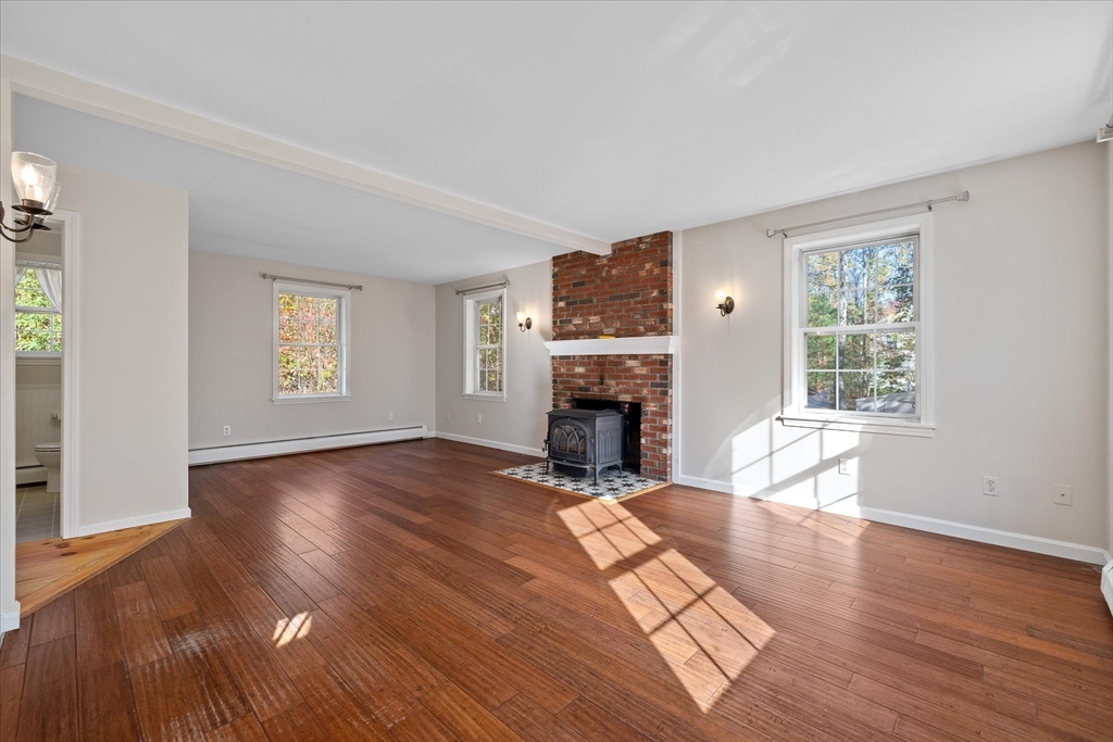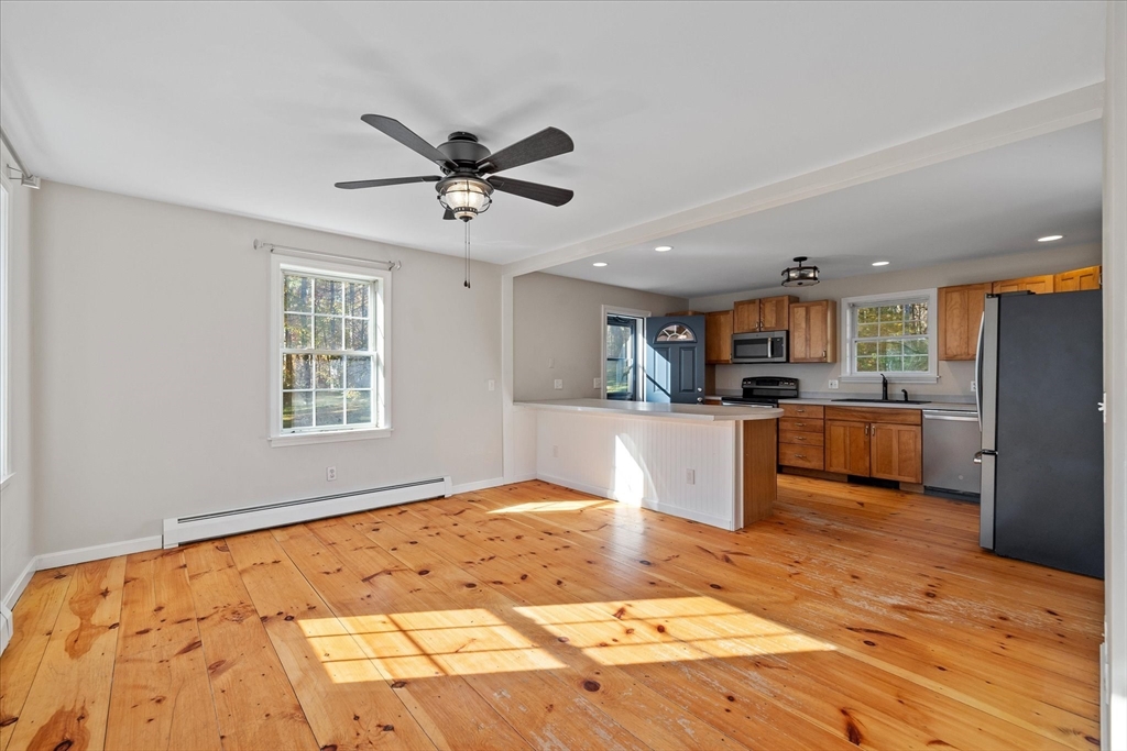 Welcome to 9 Town Farm Rd! Step inside and you will find yourself in the heart of the home; the kitchen. The kitchen boasts gorgeous wide plank wood floors and stainless steel appliances and flows right into the adjoining dining room, which offers plenty of space to host friends & family. The living room is centered around a cozy fireplace with wood stove. Upstairs, a spacious primary bedroom awaits with cathedral ceilings and a walk-in closet. An oversized bathroom and the 2 remaining bedrooms complete the second level. Additional space in the basement is a blank canvas for your ideas; make it into a playroom, home gym, you name it! Maximize energy savings with OWNED solar (solar loan to be paid off at closing) and peace of mind knowing that a new roof was installed in 2022. Nestled on 2.72 acres of tree-line private land you’ll enjoy spending time outdoors just as much as indoors. Your next chapter starts here!