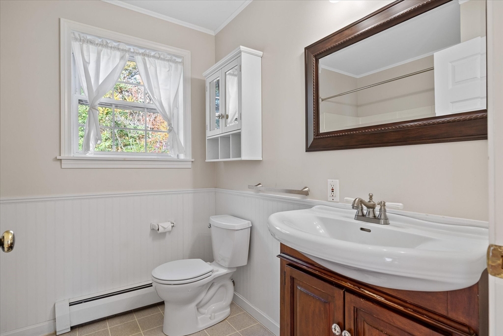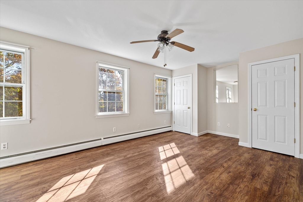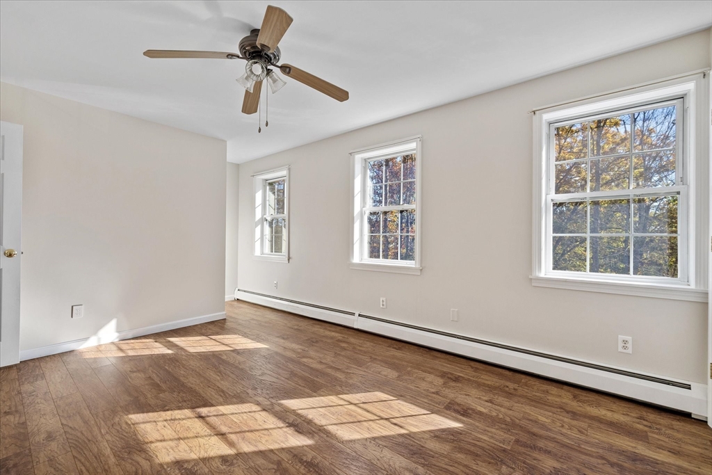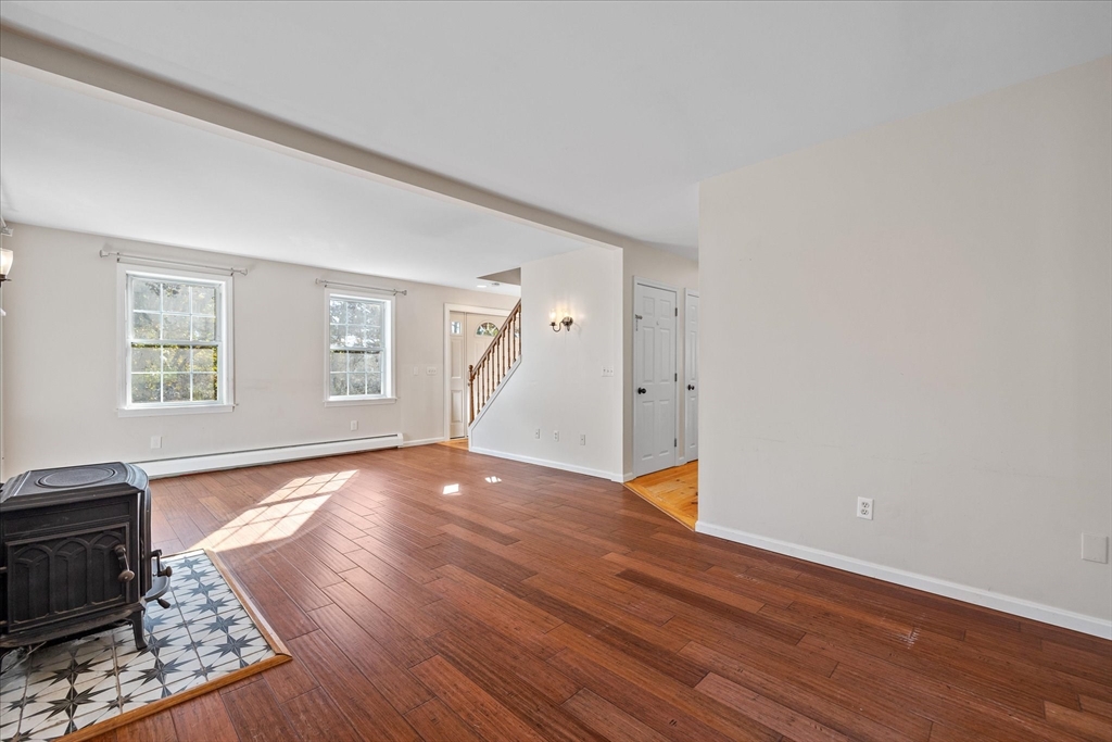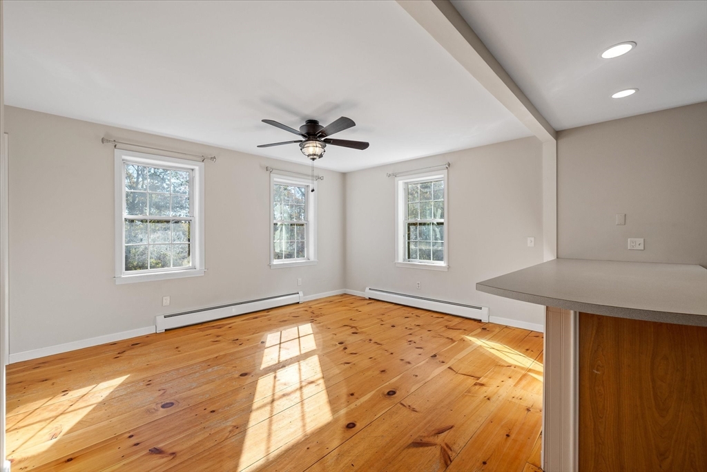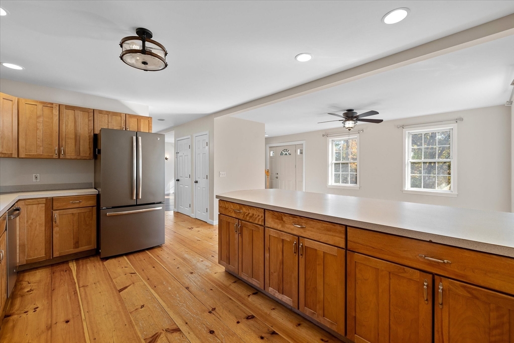 Welcome to 9 Town Farm Rd! Step inside and you will find yourself in the heart of the home; the kitchen. The kitchen boasts gorgeous wide plank wood floors and stainless steel appliances and flows right into the adjoining dining room, which offers plenty of space to host friends & family. The living room is centered around a cozy fireplace with wood stove. Upstairs, a spacious primary bedroom awaits with cathedral ceilings and a walk-in closet. An oversized bathroom and the 2 remaining bedrooms complete the second level. Additional space in the basement is a blank canvas for your ideas; make it into a playroom, home gym, you name it! Maximize energy savings with OWNED solar (solar loan to be paid off at closing) and peace of mind knowing that a new roof was installed in 2022. Nestled on 2.72 acres of tree-line private land you’ll enjoy spending time outdoors just as much as indoors. Your next chapter starts here!