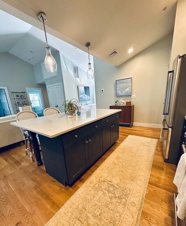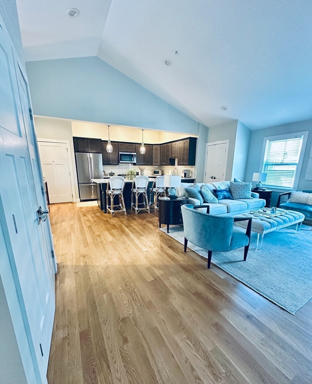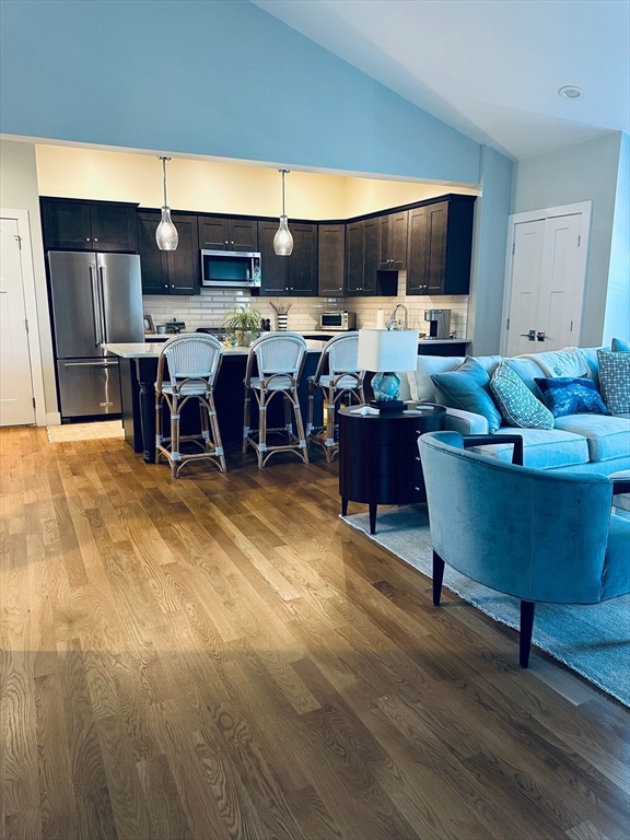 Located in the heart of Pembroke and within walking distance to Pembroke Center. This 2 bedrooms, 1 full bathroom with double vanity sinks is now available for September 1 move in. Every detail has been addressed-European flair designed with the best materials and finishes. Open Floor plan flows from Living Room to Kitchen area with high ceilings and recessed lighting. Beginning in the kitchen with all Stainless Steel kitchen appliances, beautiful Quartz counter tops, decorative back splash with self closing custom cabinets. Take a break after a long day on your private deck located right off the living room. Best of all-efficient stack-able washer and dryer in each Unit. Each rental unit has 2 parking spaces. Come and see this beautiful unit in Orchard Hills! This unit is on the second floor and does not have an elevator.