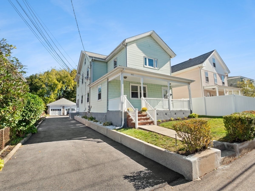 A Hyde Park 2 family gem that is well-maintained with space, parking, and endless potential! Each unit offers classic charm and is ideal for owner-occupants or investors. Both units offer a separate dining area, eat-in kitchen, high ceilings, and great size bedrooms. unit 1 greets you with hardwood floors and ceramic tiles. Unit 2 has updated luxury vinyl flooring and hardwood floors. Washer and dryer located in the basement for convenience. A detached 2-car garage and ample driveway parking for up to 8 vehicles—rare for the city. The location is unbeatable, just minutes from the Hyde Park and Fairmount commuter rail stations, multiple bus routes, and local shops, and dining along Hyde Park Avenue. Nearby outdoor amenities include the scenic Stony Brook Reservation, George Wright Golf Course, and neighborhood parks. Easy access to local schools, including Boston Renaissance Charter and Academy of the Pacific Rim Charter School. Do not miss your opportunity to own this great investment!