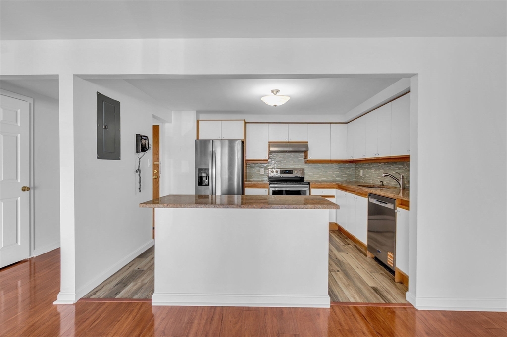 Located on Spinnaker Island, in the coastal community of Hull, Massachusetts, this two-bedroom condominium offers an invitation to seaside living. This property presents an opportunity to embrace comfort and convenience of one level living. The heart of this condominium features a bright spacious freshly painted open floorplan with kitchen, dining and living area, water views, two full bathrooms, private balcony and in-unit laundry. Building amenities include elevator, underground parking (assigned & guest) with interior access, exterior guest parking, extra storage space, fitness room, large waterfront pool, small private beach and a clubhouse. Just minutes from the MBTA ferry. Make Hull your home!