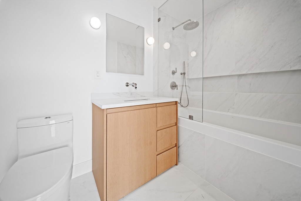 Experience modern living in this newly renovated 2 bed, 2 full bath condo at FP3, located in Boston’s vibrant Seaport neighborhood. This 7th-floor unit offers 1082 sq ft of space with high ceilings, floor-to-ceiling south-facing windows, and an open-concept layout that blends industrial character with contemporary finishes. The sleek kitchen features stainless steel appliances and custom cabinetry, while the spacious living area flows seamlessly onto a private outdoor terrace—perfect for entertaining or relaxing. The bedrooms are generously sized, and the bathrooms are elegantly appointed with modern fixtures. Additional highlights include heated bathroom floors, electric blinds, and central HVAC. FP3 is a professionally managed elevator building with 24-hour concierge service, a stylish lobby featuring a local Boston artist gallery, and access to a shared rooftop terrace.