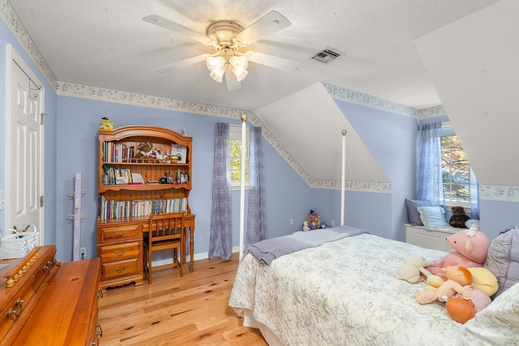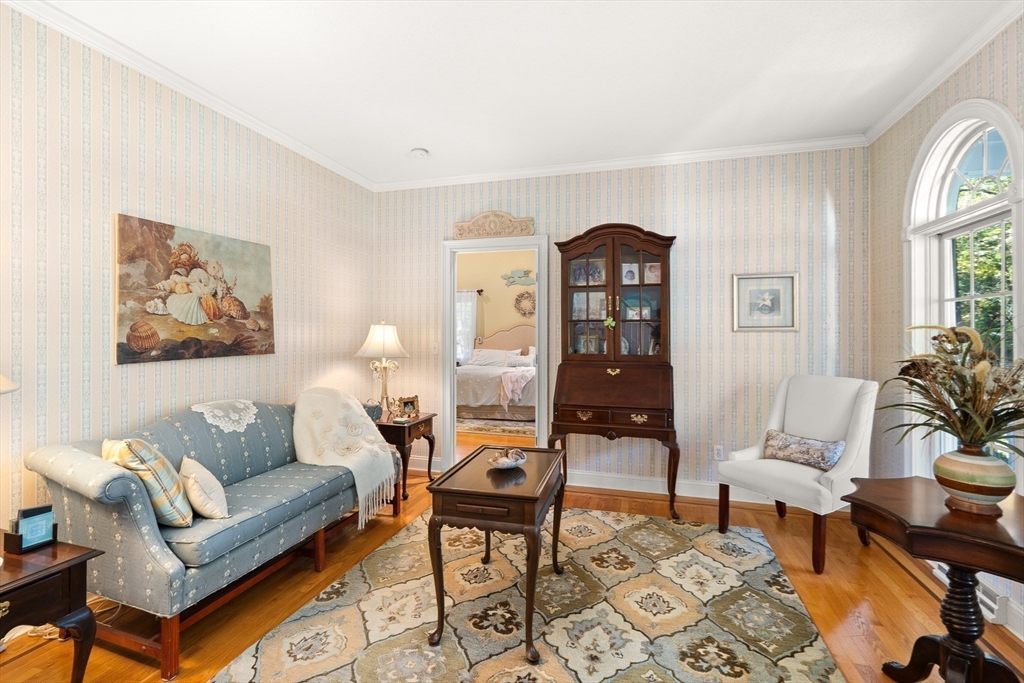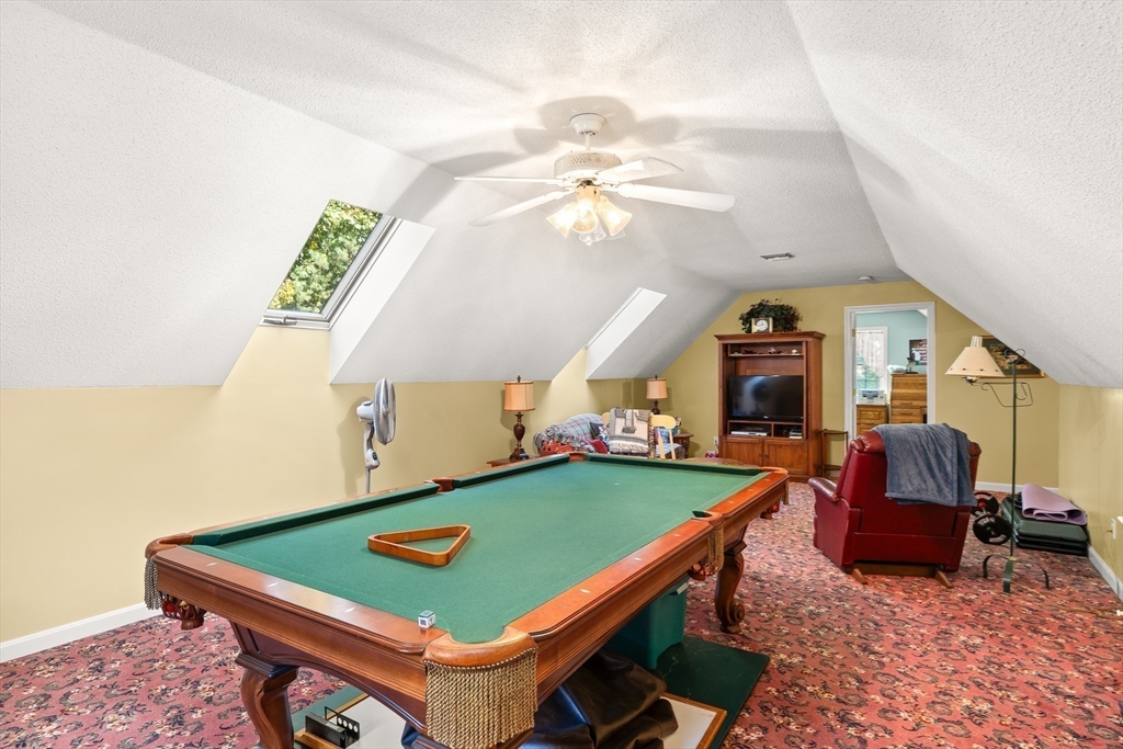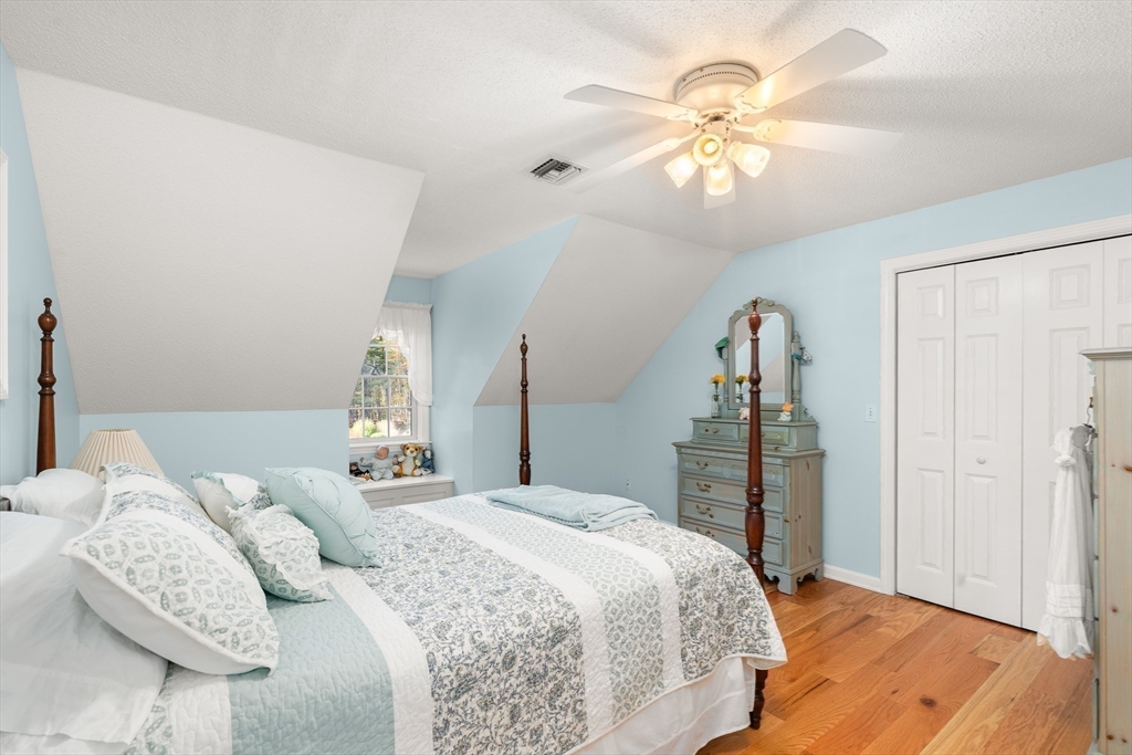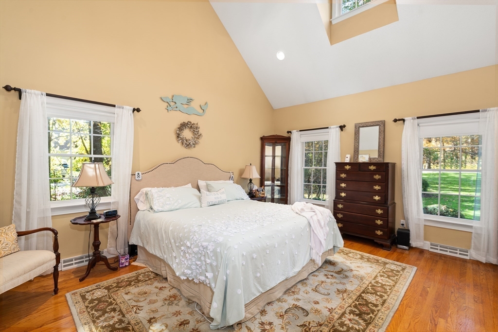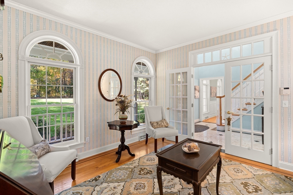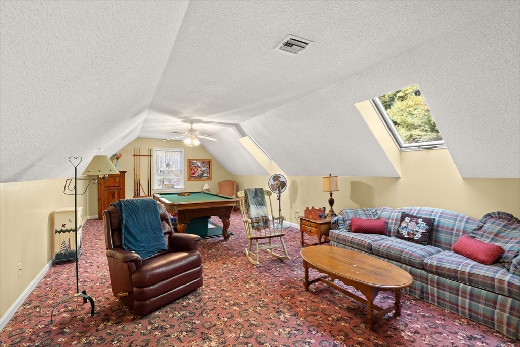 Stunning one owner custom-built Cape in premiere Southampton neighborhood with thoughtfully designed features including large Andersen windows, offering lots of natural sunlight. The charming front porch leads to an impressive two story foyer & spacious open layout, perfect for entertaining. The kitchen with island & breakfast nook opens to living room with stone gas fireplace. The first floor continues with a formal dining room and an enclosed den with French doors. The first floor primary bedroom is spacious and airy with cathedral ceilings and leads to a private ensuite bath and double closets. Upstairs, there are three large bedroom all with ample closet space. The expansive bonus room over the garage is a perfect rec room or home office. The three car garage has direct access to the mudroom & convenient first floor laundry. Hydro air natural gas heating system with 3 zones is efficient, supplied by Holyoke Gas. The large composite deck overlooks the beautiful & private backyard.