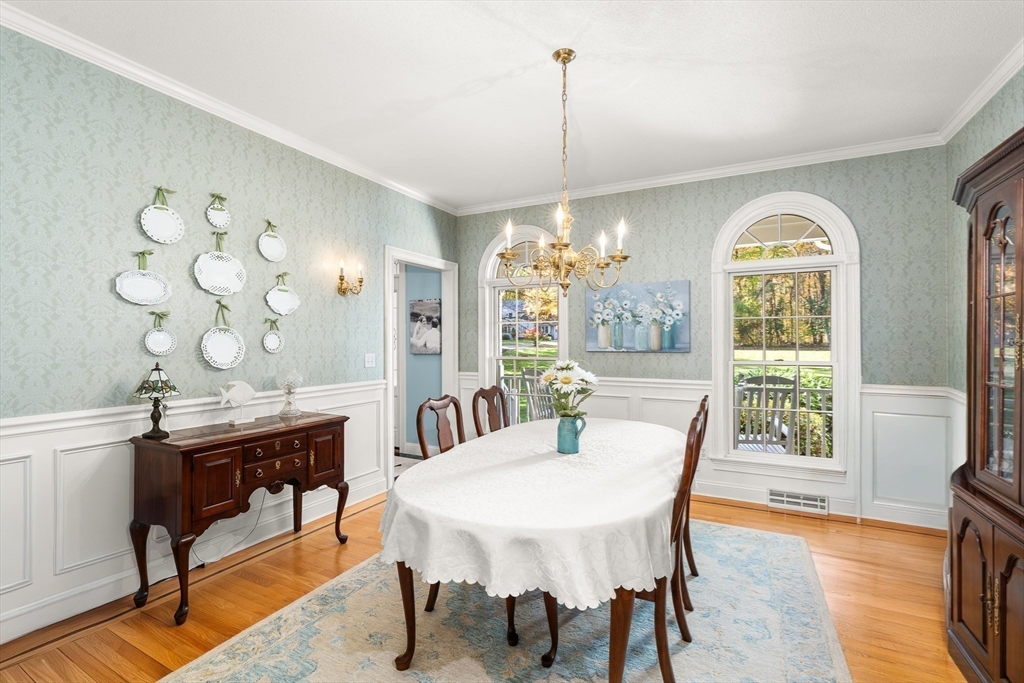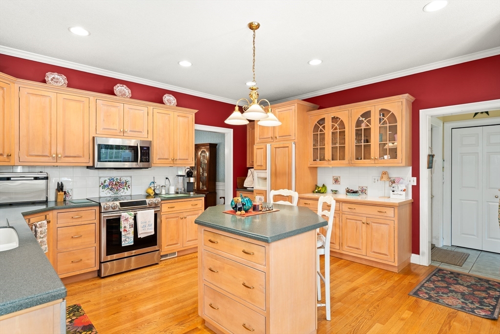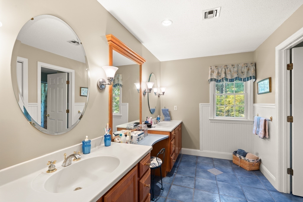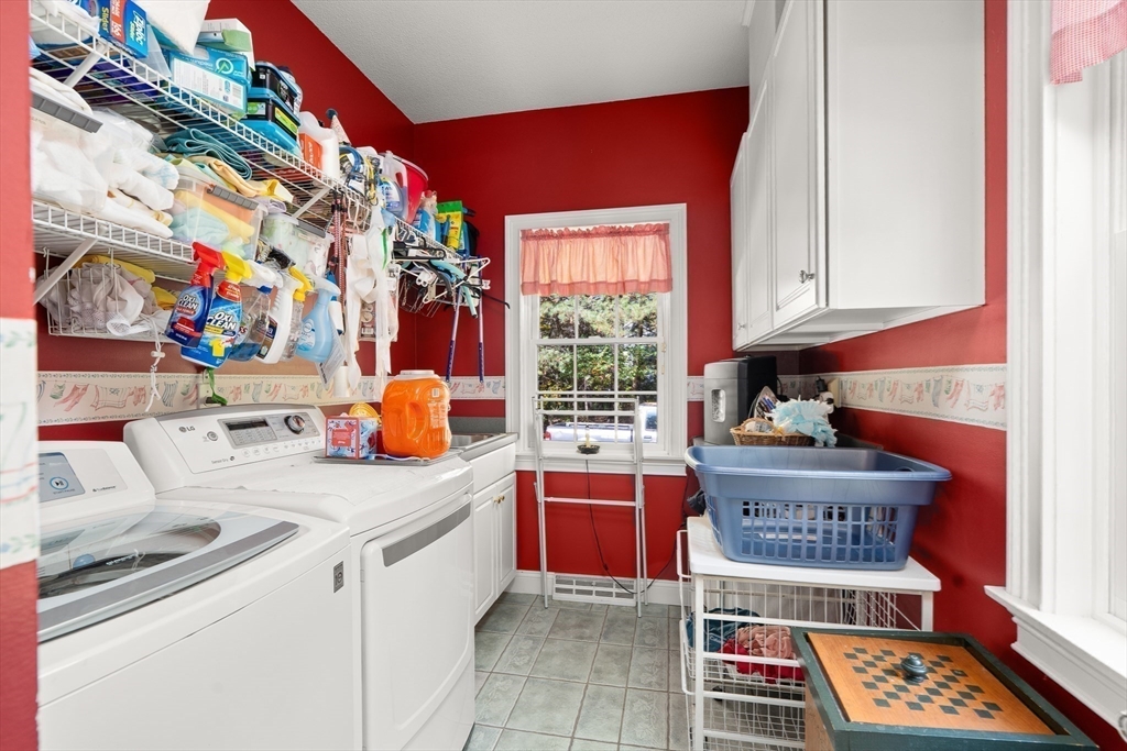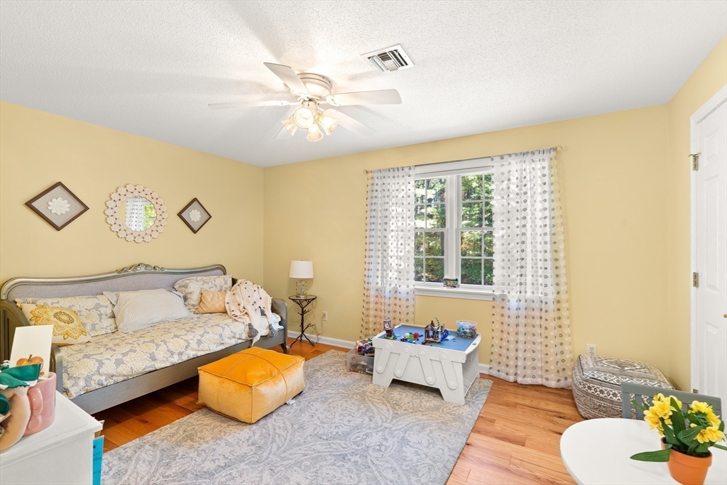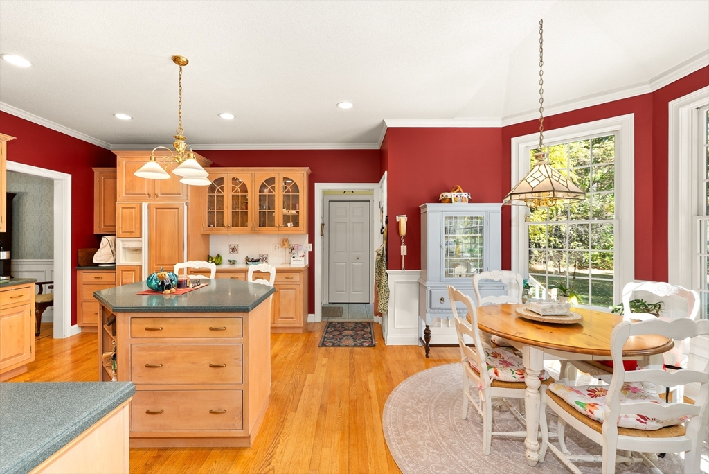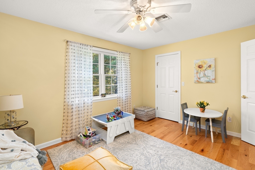 Stunning one owner custom-built Cape in premiere Southampton neighborhood with thoughtfully designed features including large Andersen windows, offering lots of natural sunlight. The charming front porch leads to an impressive two story foyer & spacious open layout, perfect for entertaining. The kitchen with island & breakfast nook opens to living room with stone gas fireplace. The first floor continues with a formal dining room and an enclosed den with French doors. The first floor primary bedroom is spacious and airy with cathedral ceilings and leads to a private ensuite bath and double closets. Upstairs, there are three large bedroom all with ample closet space. The expansive bonus room over the garage is a perfect rec room or home office. The three car garage has direct access to the mudroom & convenient first floor laundry. Hydro air natural gas heating system with 3 zones is efficient, supplied by Holyoke Gas. The large composite deck overlooks the beautiful & private backyard.