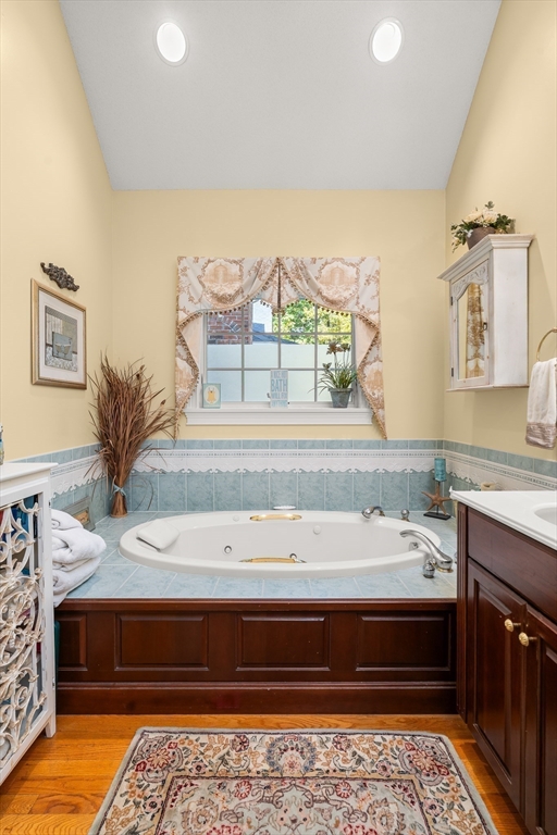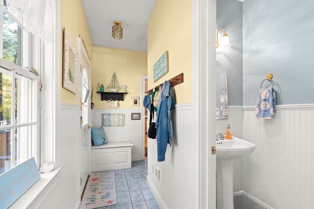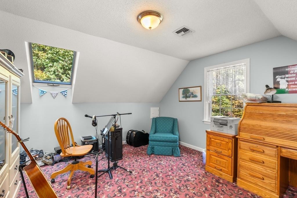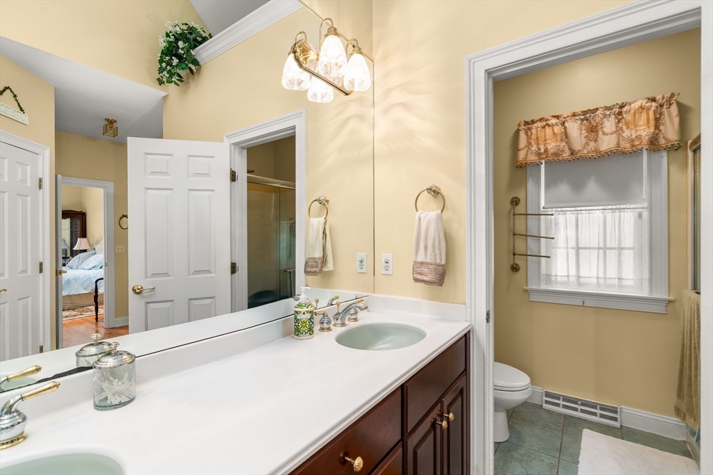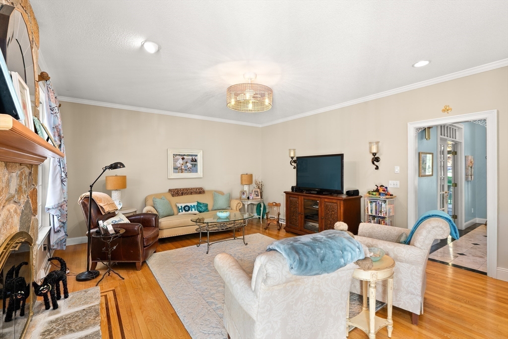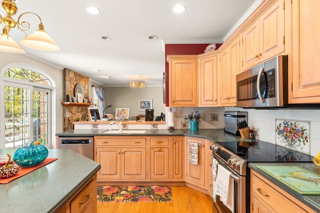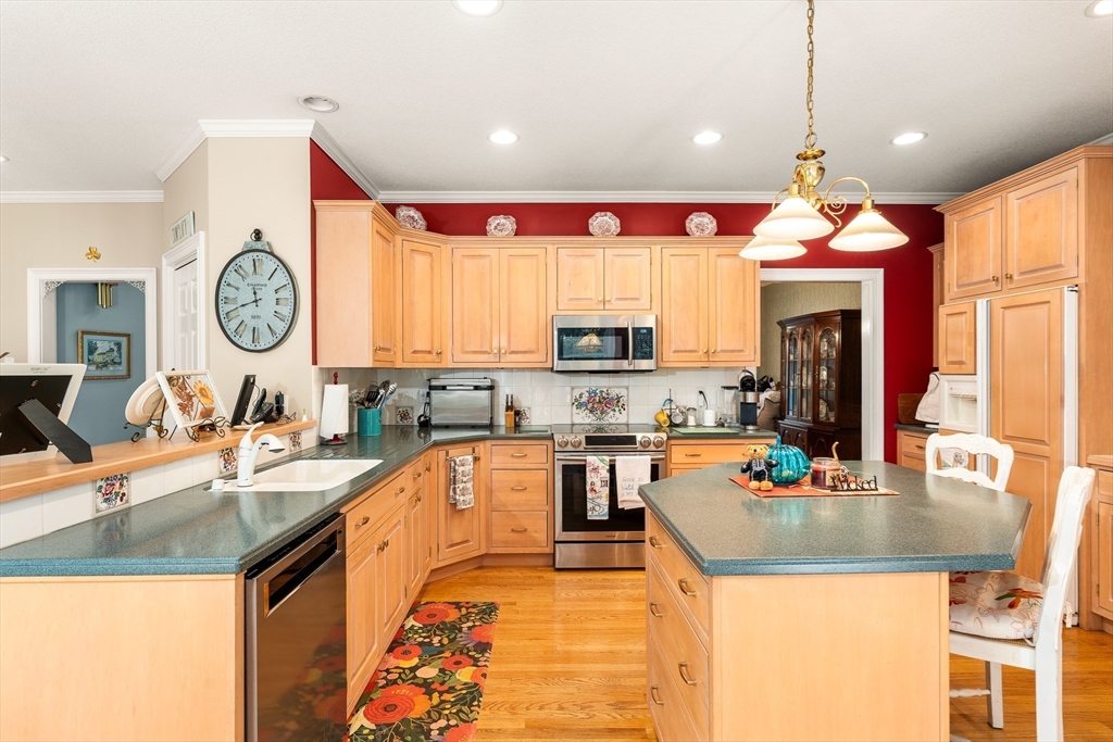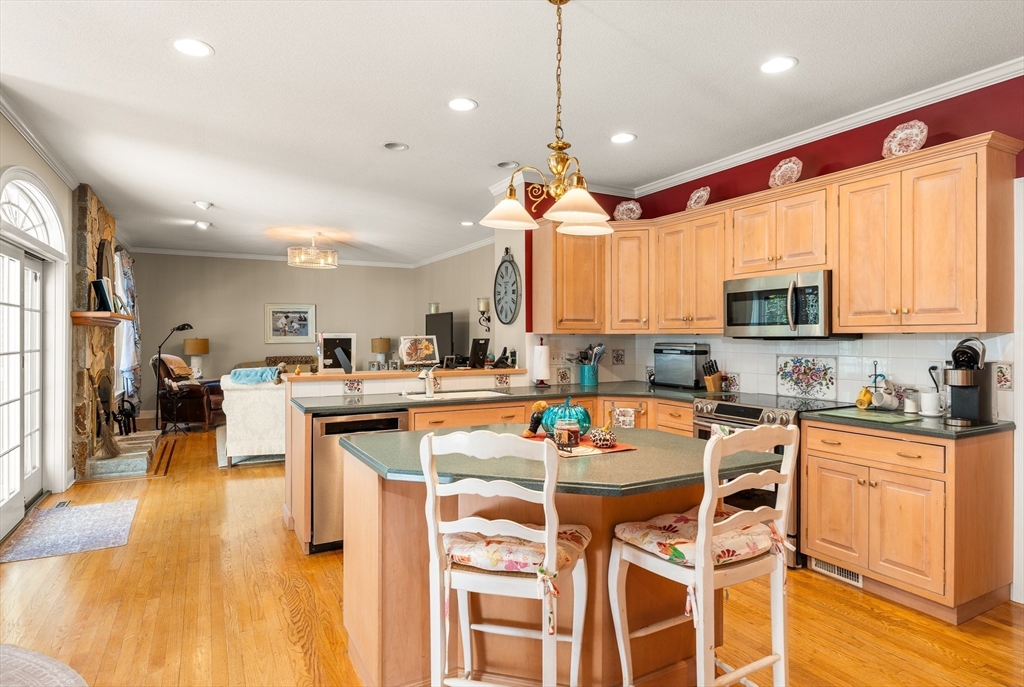 Stunning one owner custom-built Cape in premiere Southampton neighborhood with thoughtfully designed features including large Andersen windows, offering lots of natural sunlight. The charming front porch leads to an impressive two story foyer & spacious open layout, perfect for entertaining. The kitchen with island & breakfast nook opens to living room with stone gas fireplace. The first floor continues with a formal dining room and an enclosed den with French doors. The first floor primary bedroom is spacious and airy with cathedral ceilings and leads to a private ensuite bath and double closets. Upstairs, there are three large bedroom all with ample closet space. The expansive bonus room over the garage is a perfect rec room or home office. The three car garage has direct access to the mudroom & convenient first floor laundry. Hydro air natural gas heating system with 3 zones is efficient, supplied by Holyoke Gas. The large composite deck overlooks the beautiful & private backyard.