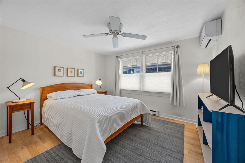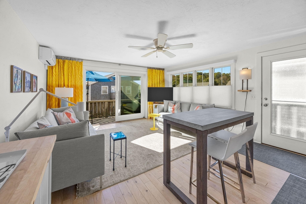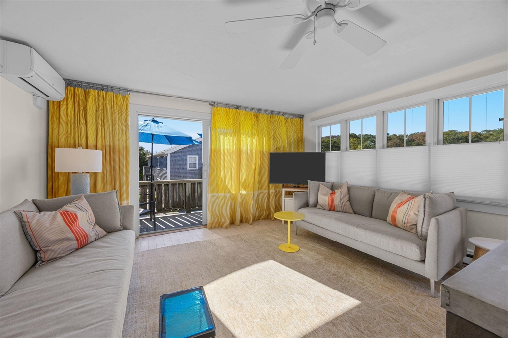 Live near the beach and enjoy all Provincetown has to offer in this top-floor Bay Colony condo. Bright and beautifully maintained, it features an open living area with sunny deck, updated kitchen with stone countertops, renovated bath, new flooring, and efficient split AC/heat units. Both bedrooms fit king beds, with the rear overlooking wooded views.Amenities include deeded parking, guest parking, private laundry and storage, and exclusive beach access with stunning harbor views. Brand-new siding (assessment paid) makes this turnkey home ideal for year-round living, a weekend getaway, or investment. (Buyer to assume sewer betterment).
